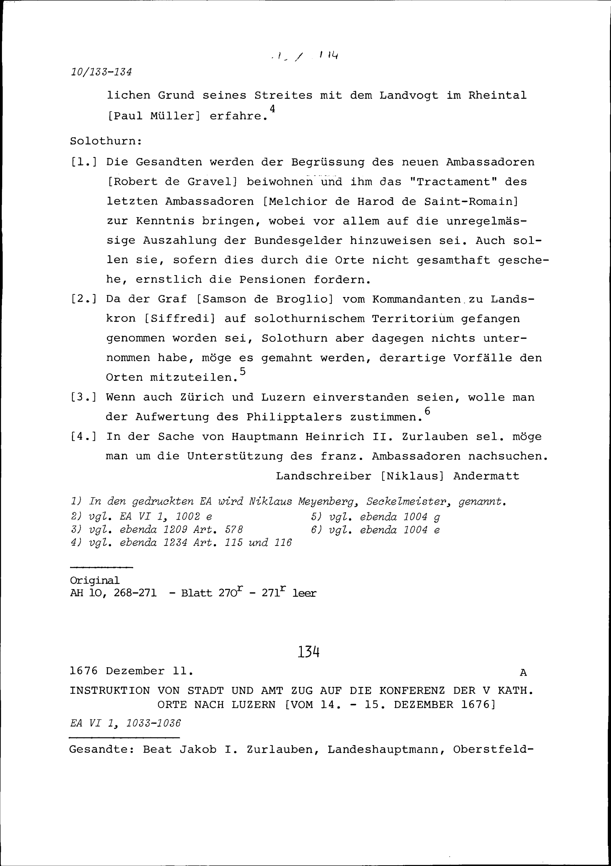 Instruktion von Stadt und Amt Zug auf die Konferenz der Fünf Katholischen Orte in Luzern vom 14. bis 15. Dezember 1676