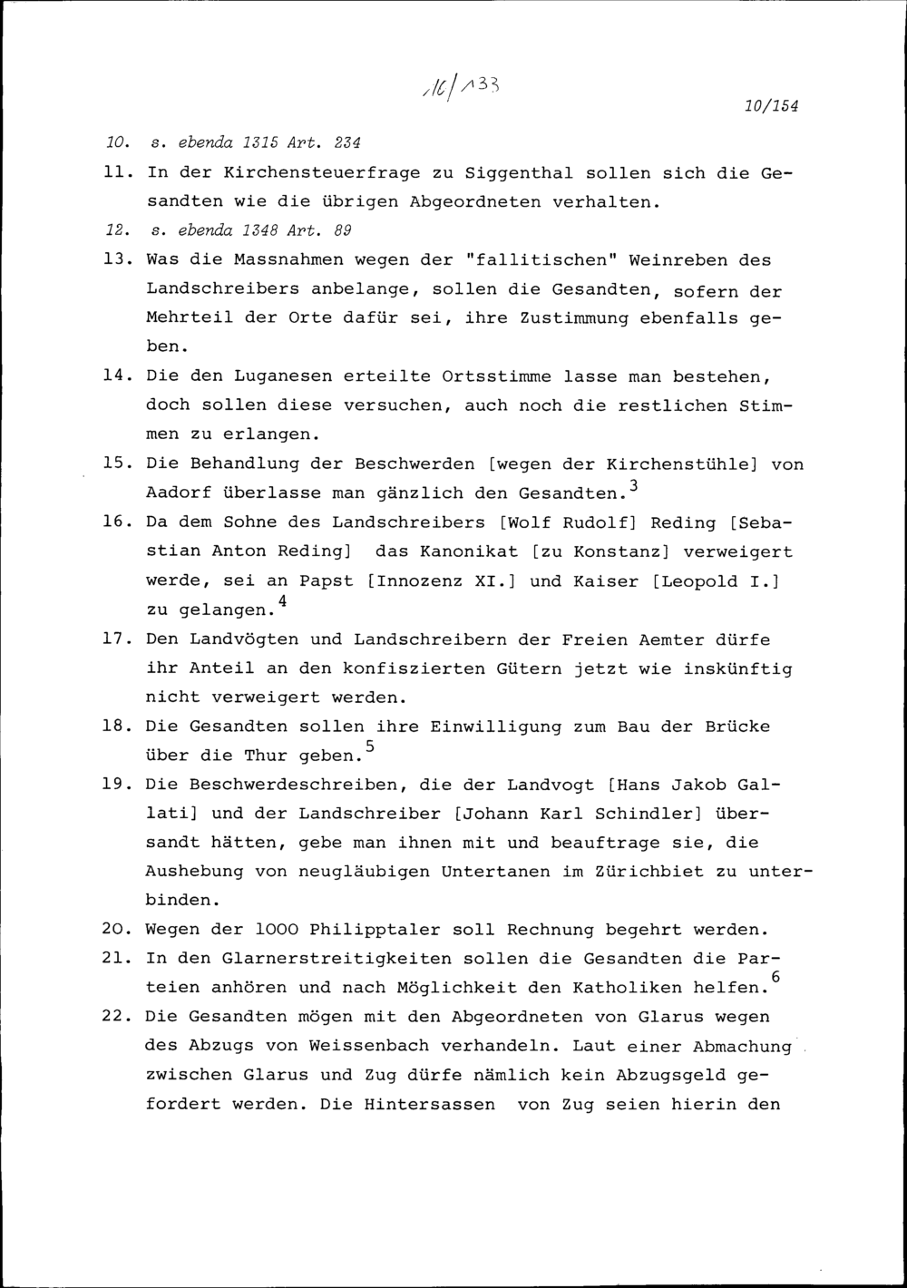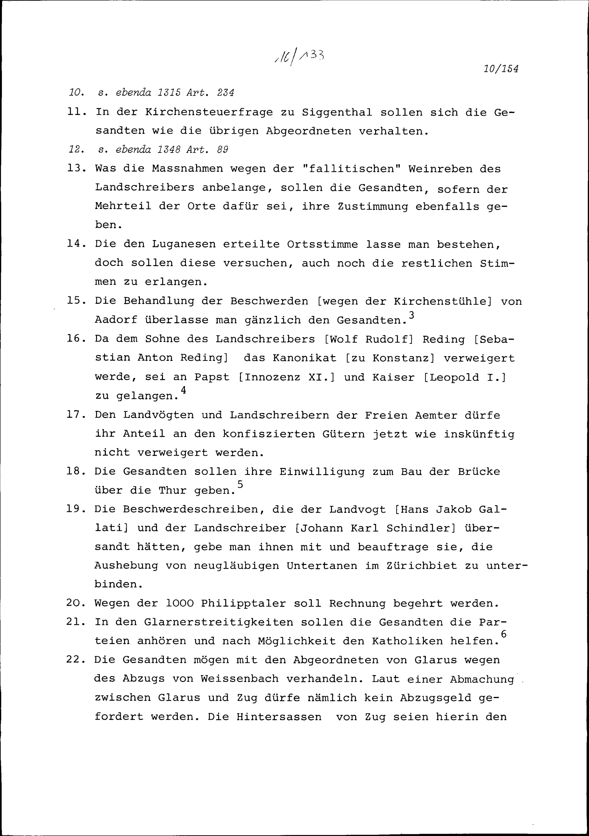 Instruktion von Stadt und Amt Zug auf die Jahrrechnung in Baden vom 2. Juli 1679