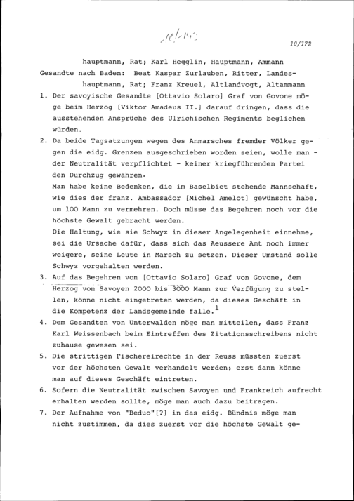 Instruktion von Stadt und Amt Zug auf die Konferenz aller Katholischen Orte in Luzern vom 31. Juli bis 1. August und die ausserordentliche Tagsatzung in Baden vom 4. bis 24. August 1690