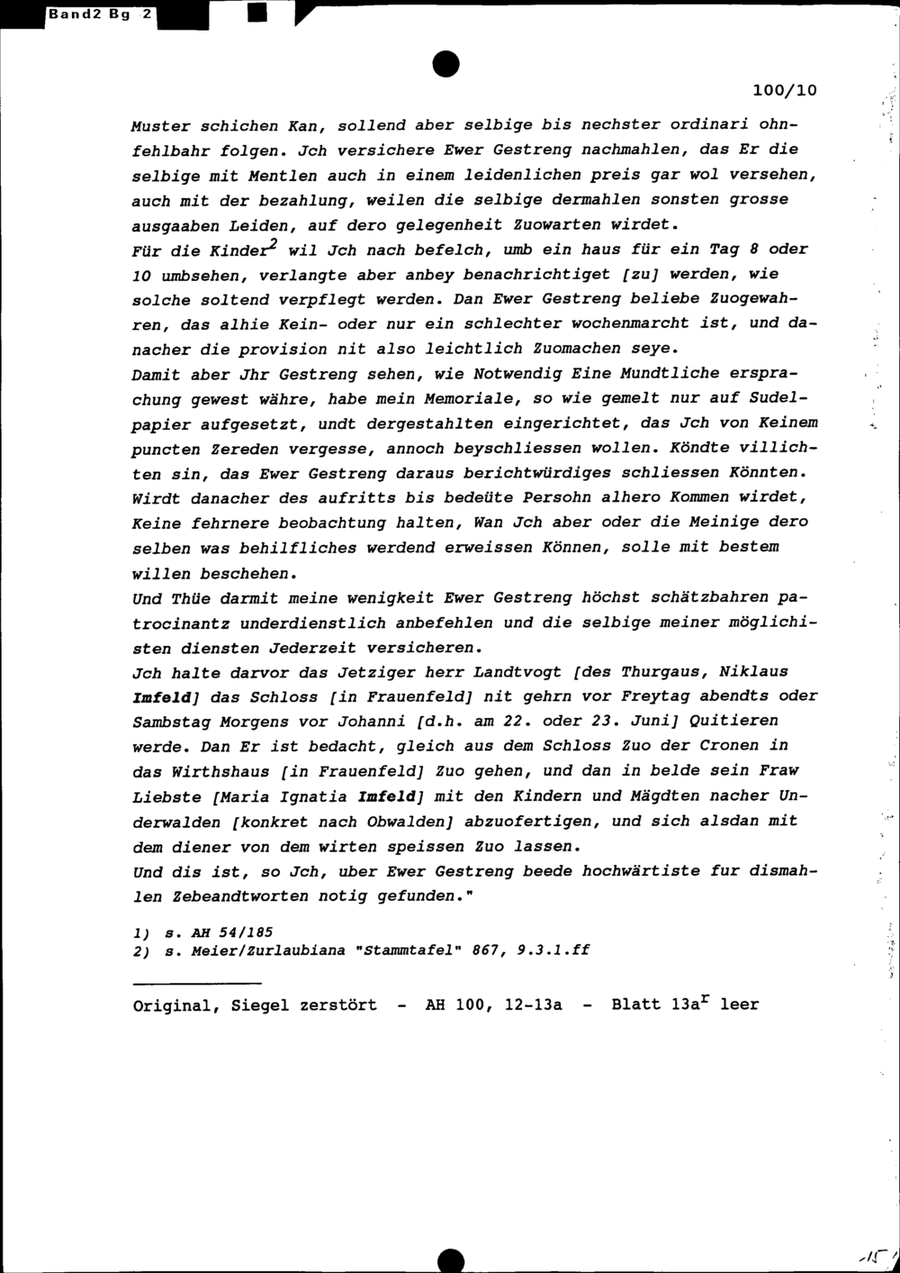 Schreiben von Karl Ludwig Engel, Landweibel im Thurgau, an Beat Jakob II. Zurlauben, Hauptmann und Landvogt des Thurgaus, Zug