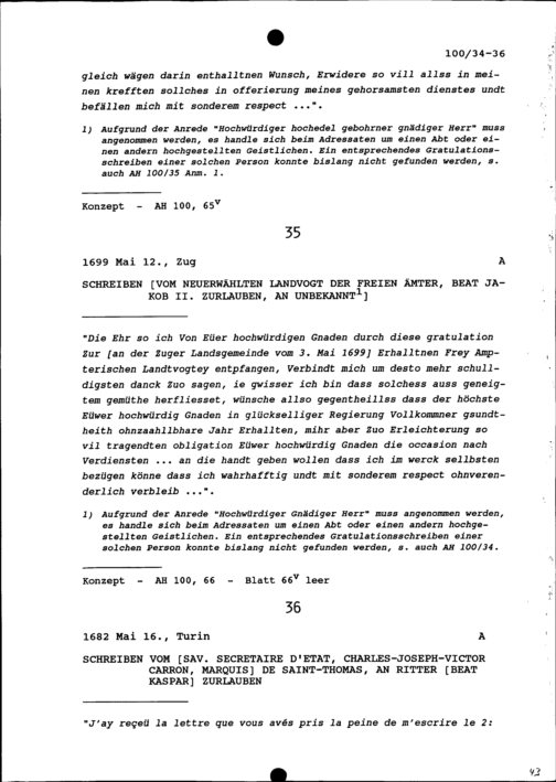 Schreiben von Beat Jakob II. Zurlauben, Landvogt der Freien Ämter, an Unbekannt