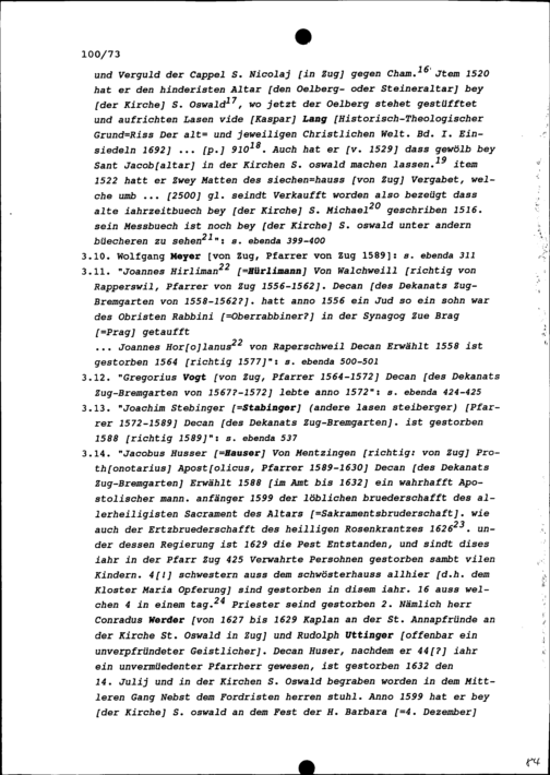 Liste der aus Stadt und Amt Zug stammenden Chorherren und Kapläne am Stift Zurzach, der Pfarrer von Zug, Cham, Oberrüti, Meierskappel, Steinhausen, Walchwil sowie der Schulmeister von Zug