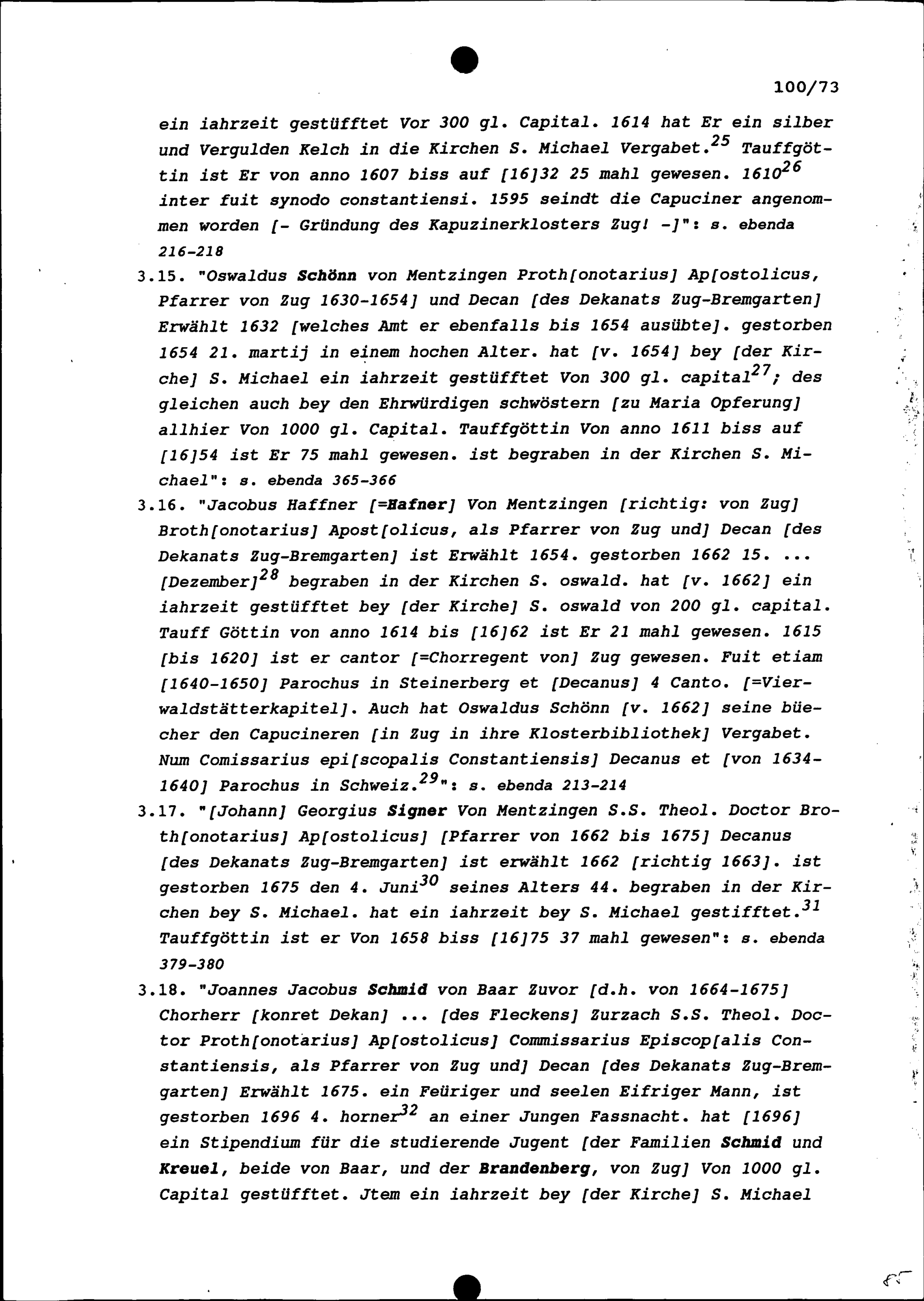 Liste der aus Stadt und Amt Zug stammenden Chorherren und Kapläne am Stift Zurzach,...