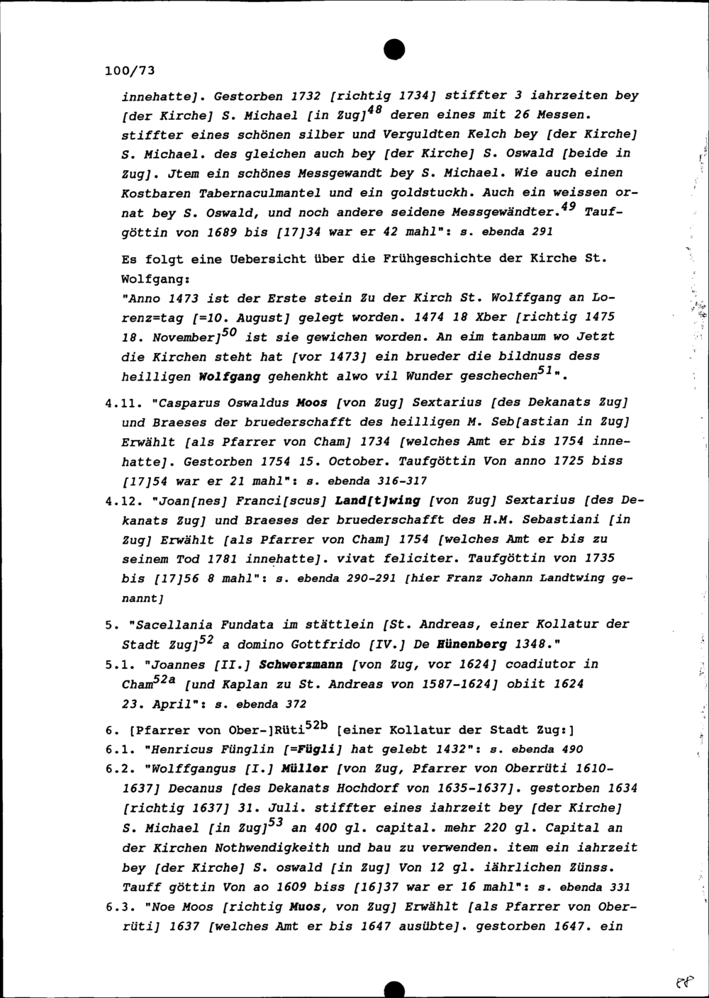 Liste der aus Stadt und Amt Zug stammenden Chorherren und Kapläne am Stift Zurzach, der Pfarrer von Zug, Cham, Oberrüti, Meierskappel, Steinhausen, Walchwil sowie der Schulmeister von Zug
