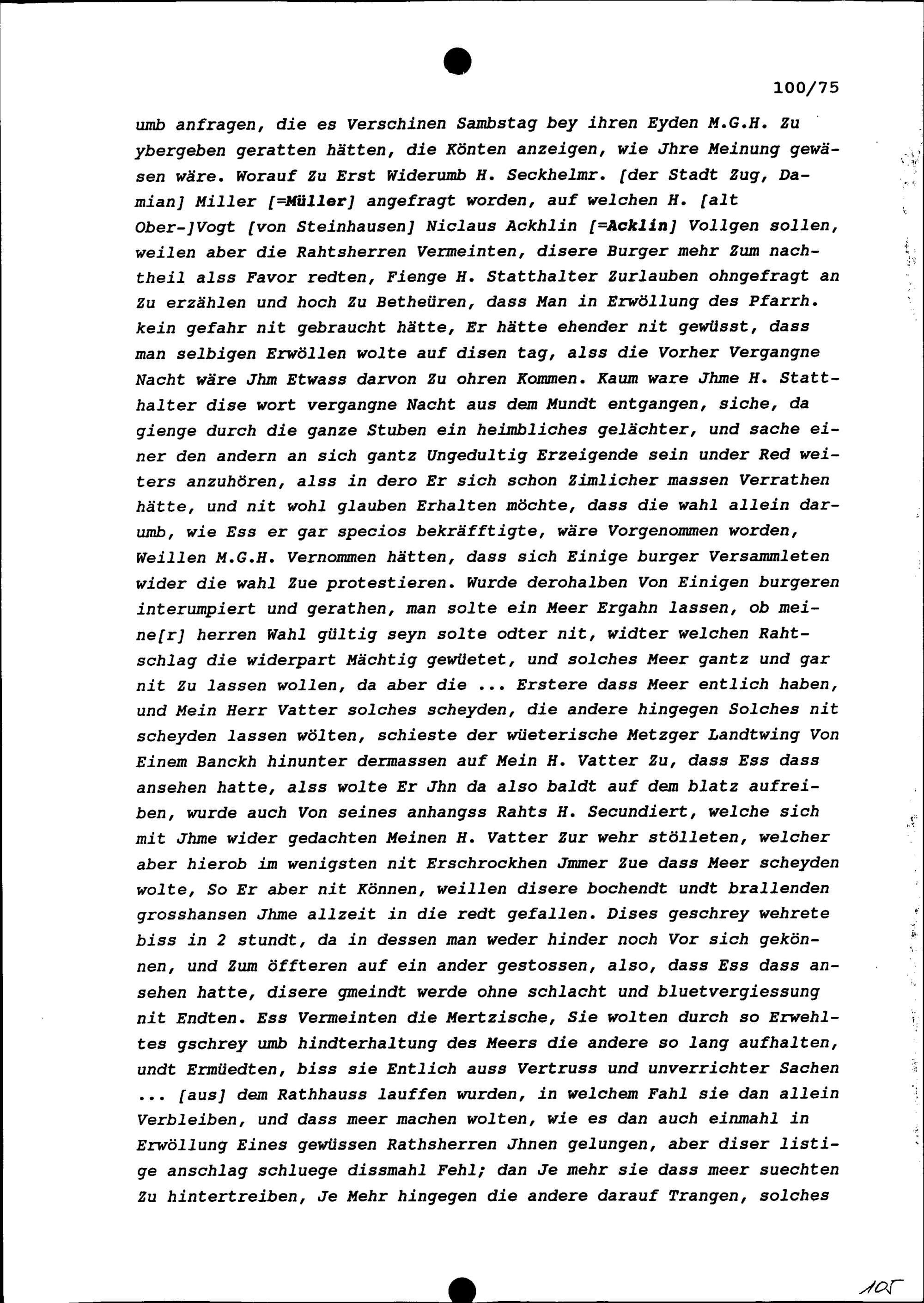 Bericht über die Wahl von Johann Jakob Schmid als Pfarrherr von Zug, aufgezeichnet...