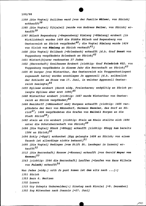 Historischer Abriss über die Fremden Dienste der Eidgenössischen Orte, über Schlachten und Gefechte in der Eidgenossenschaft, den Eintritt der einzelnen Orte ins Bündnis sowie über verschiedene Geschehnisse in Zürich