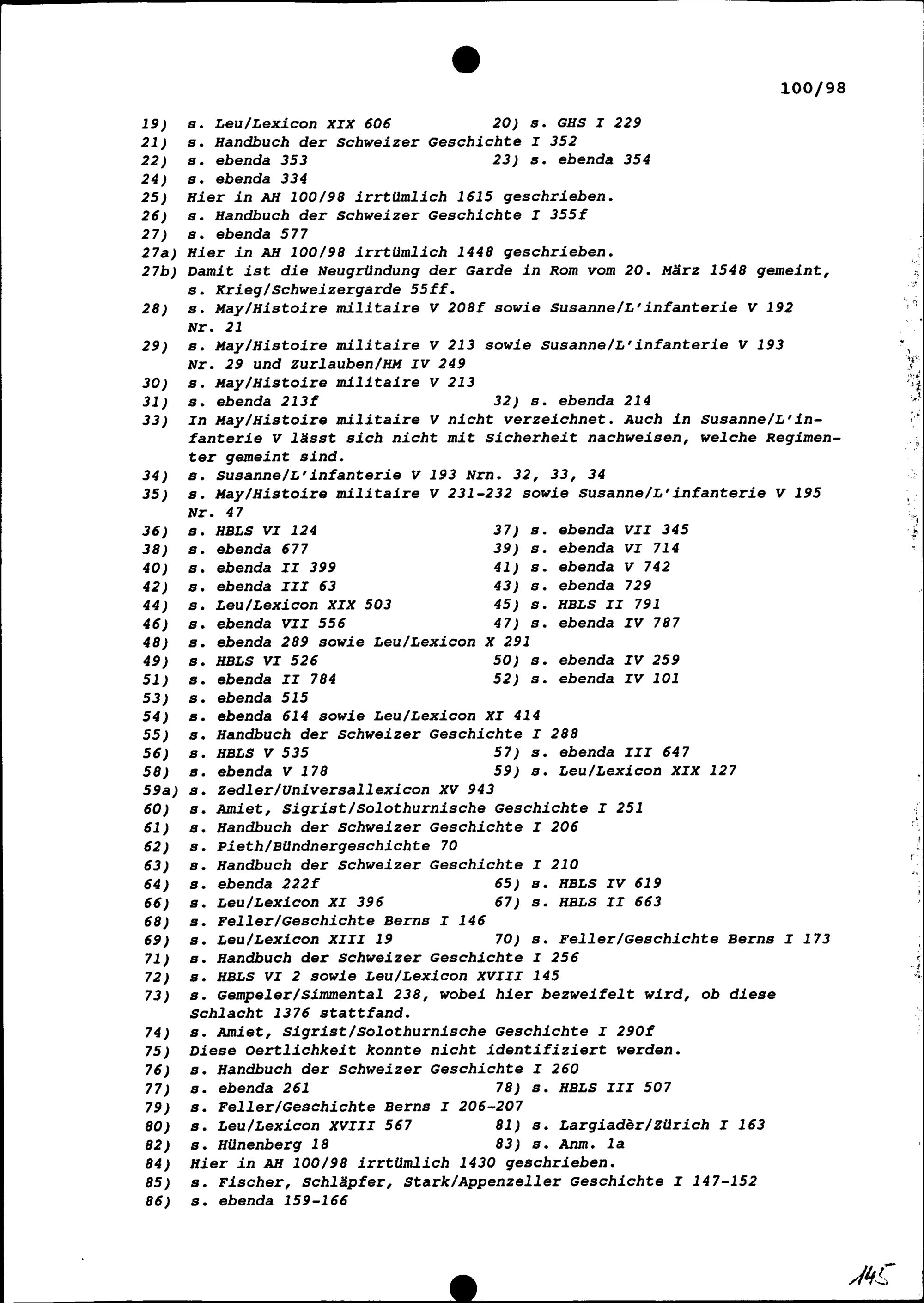 Historischer Abriss über die Fremden Dienste der Eidgenössischen Orte, über Schlachten und Gefechte in der Eidgenossenschaft, den Eintritt der einzelnen Orte ins Bündnis sowie über verschiedene Geschehnisse in Zürich