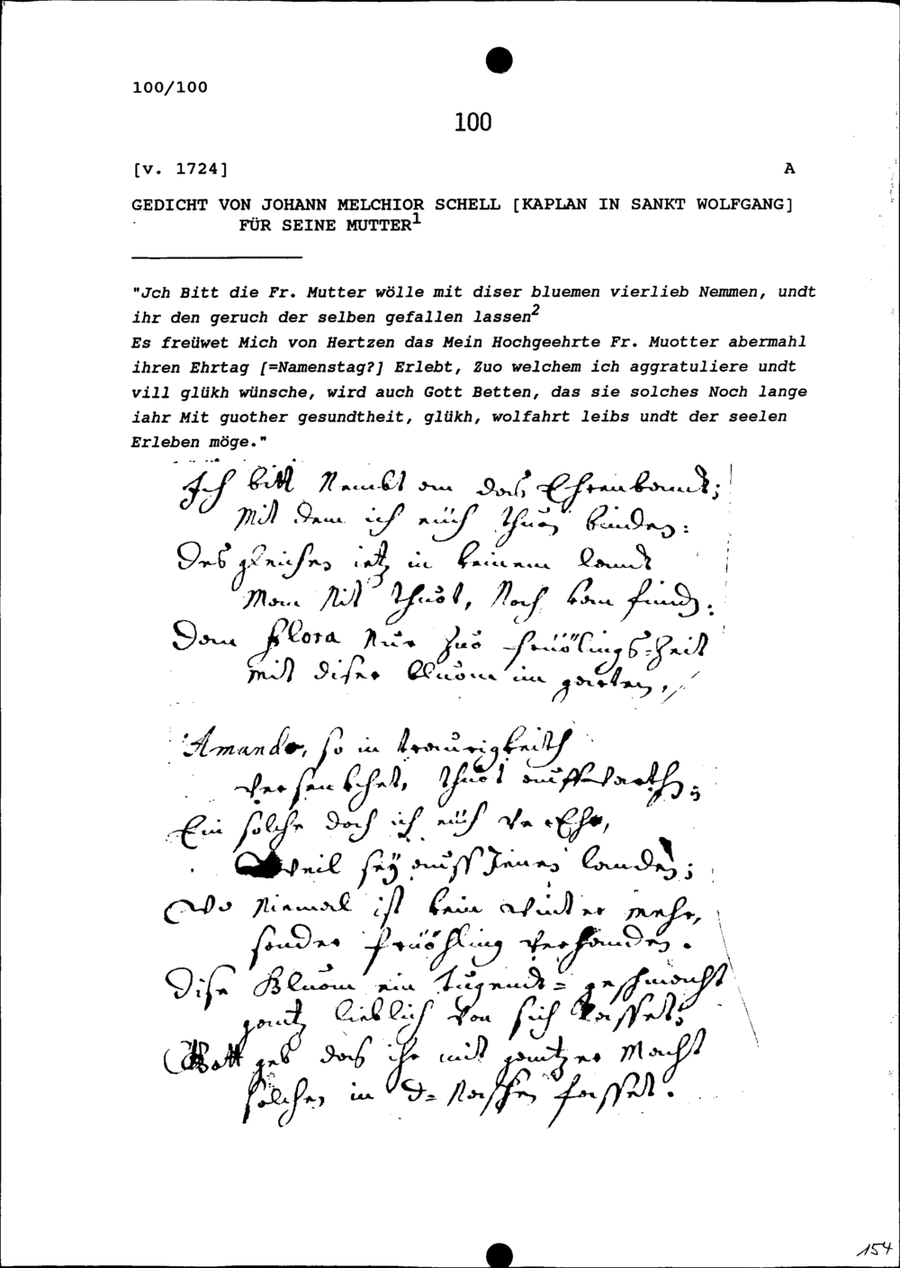 Gedicht von Johann Melchior Schell, Kaplan in Sankt Wolfgang, für seine Mutter