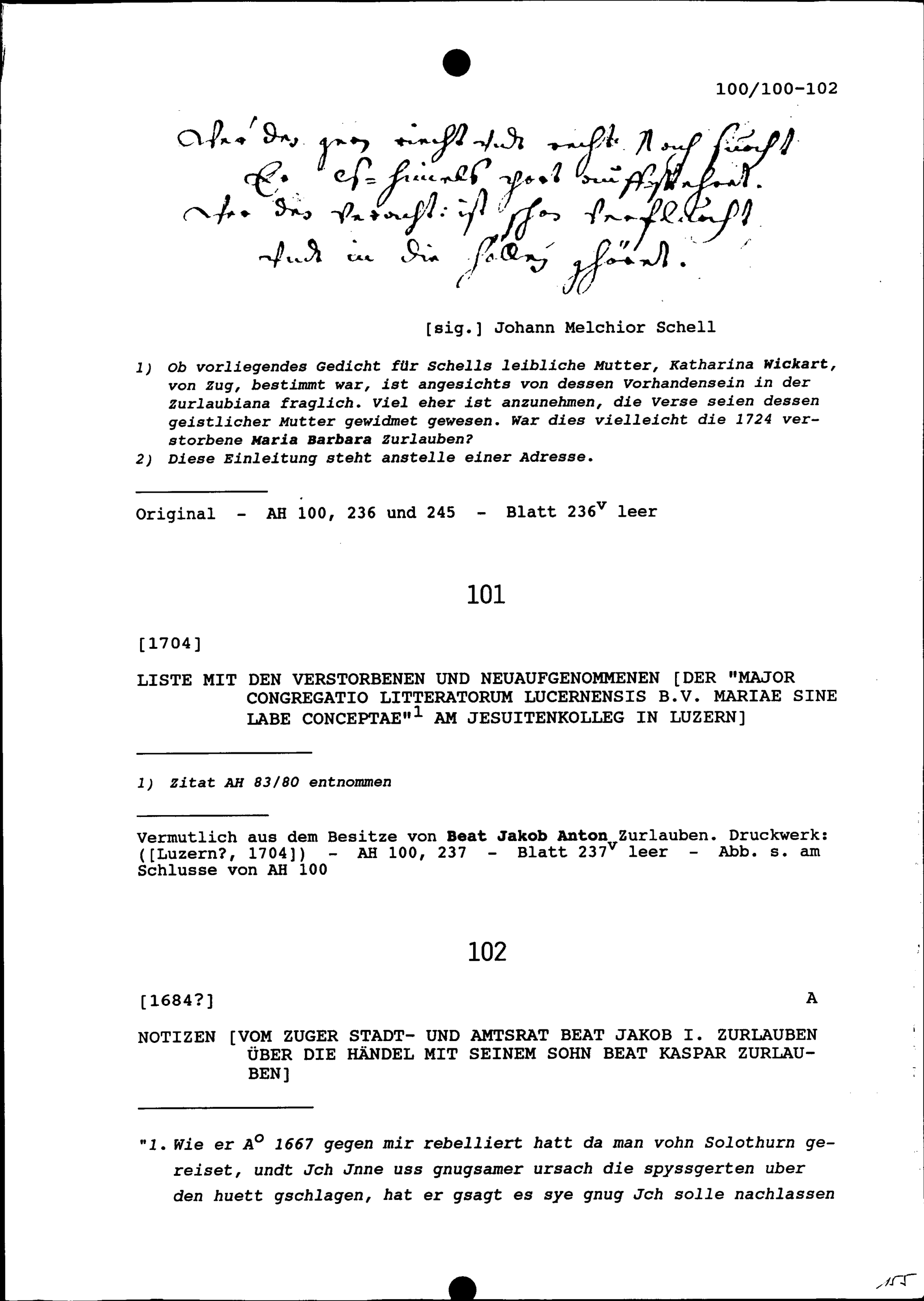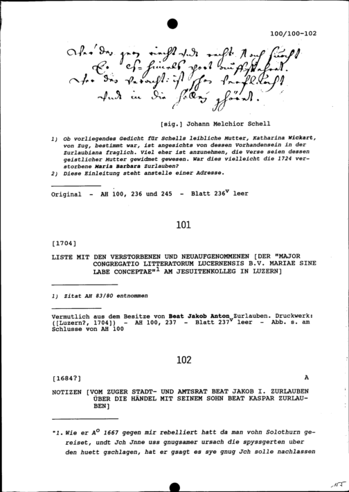 Druck: Liste mit den verstorbenen und neuaufgenommenen der "Major congregatio litteratorum Lucernensis B.V. Mariae sine labe conceptae" am Jesuitenkolleg in Luzern