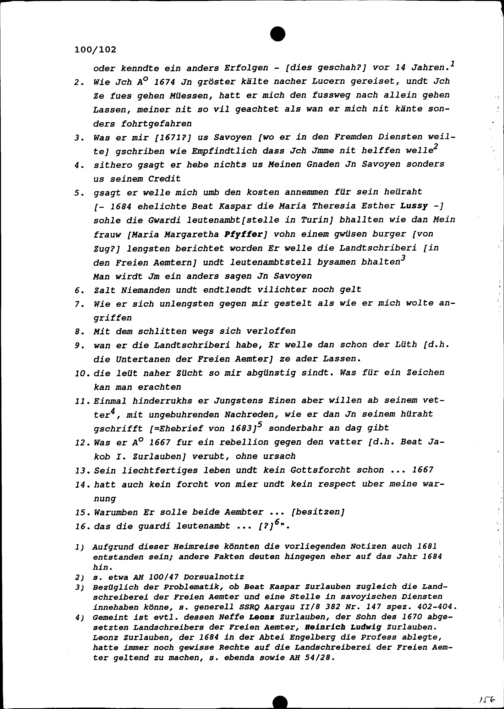 Notiz von Beat Jakob I. Zurlauben, Stadt- und Amtrat Zug, über die Händel mit seinem...