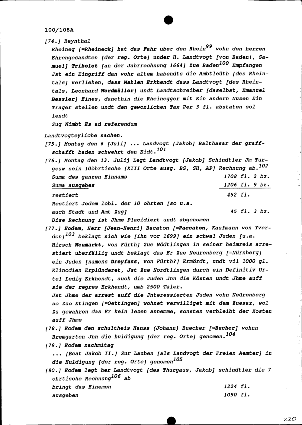 Notiz von Beat Kaspar Zurlauben, Tagsatzungsgesandter von Stadt und Amt Zug, über die Jahrrechnung vom 5. bis 29. Juli 1699 in Baden