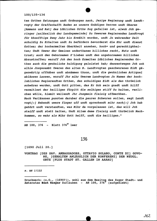 Druck: Vortrag von Ottavio Solaro, Conte di Govone, Ambassador von Savoyen, gehalten anlässlich der Konferenz der Neugläubigen Orte und Stadt Sankt Gallen in Aarau