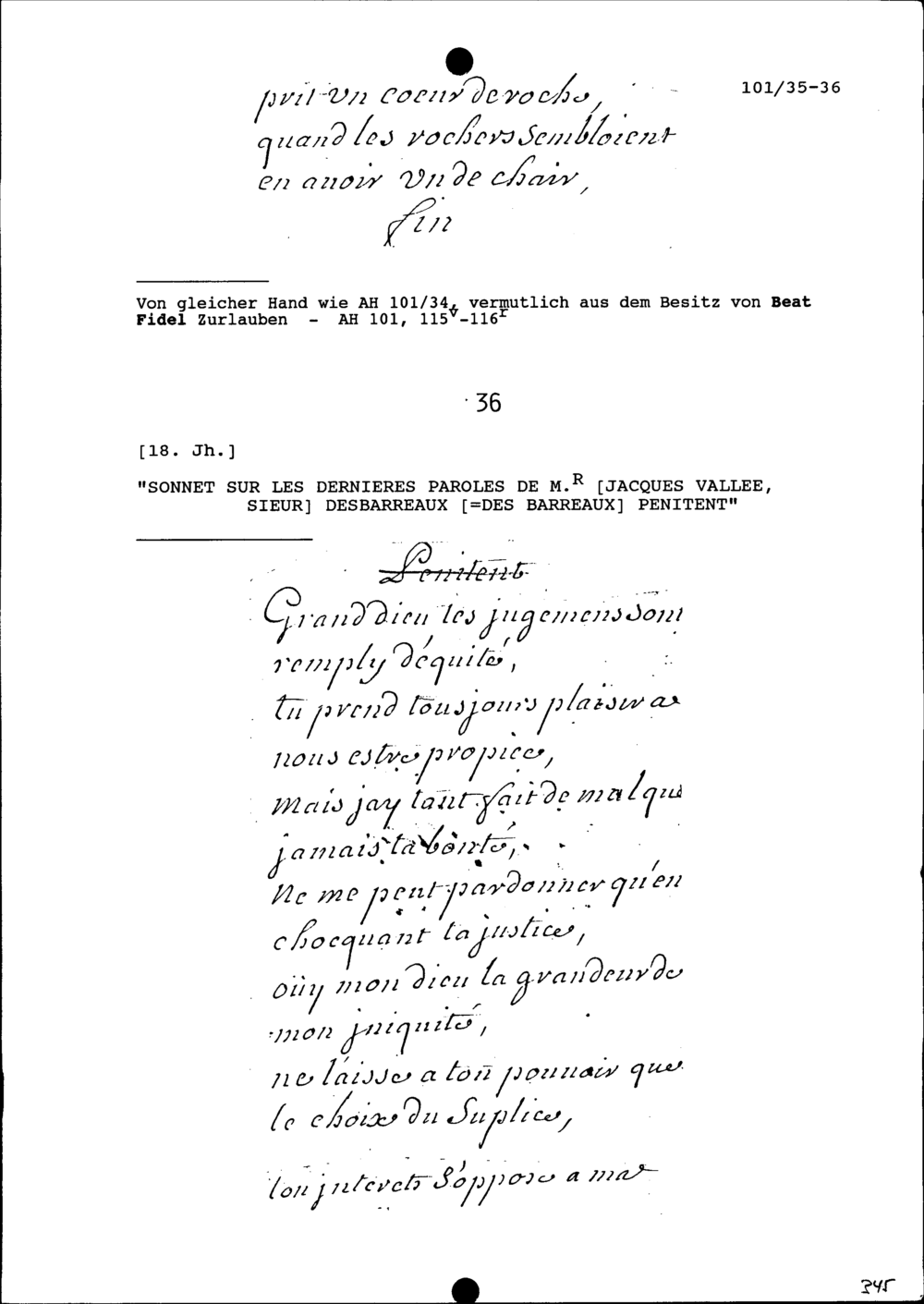 Sonnet über die letzten reumütigen Worte von Jacques Vallée, Sieur des Barreaux