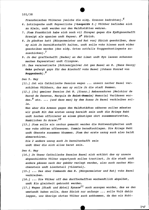 Notiz von Beat Jakob I. Zurlauben, Zuger Tagsatzungsgesandter, zur am 3. Mai 1674...