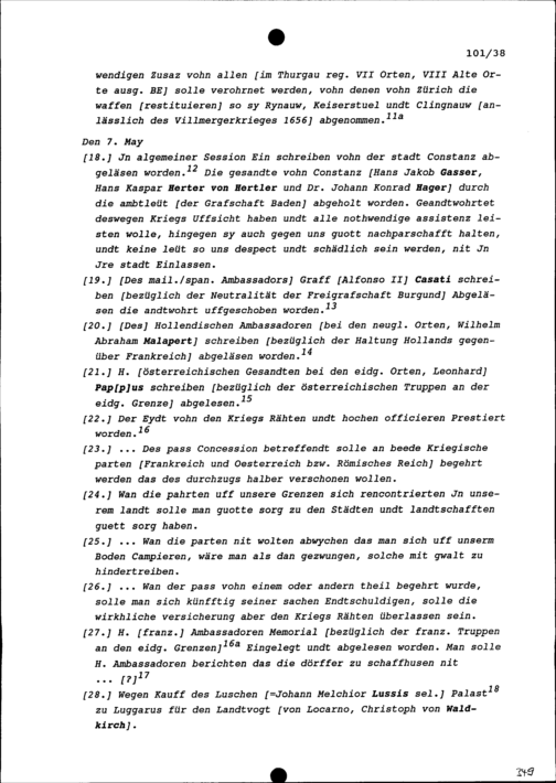 Notiz von Beat Jakob I. Zurlauben, Zuger Tagsatzungsgesandter, zur am 3. Mai 1674...