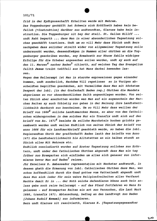 Bericht von Beat Jakob II. Zurlauben, Tagsatzungsgesandter von Stadt und Amt Zug,...
