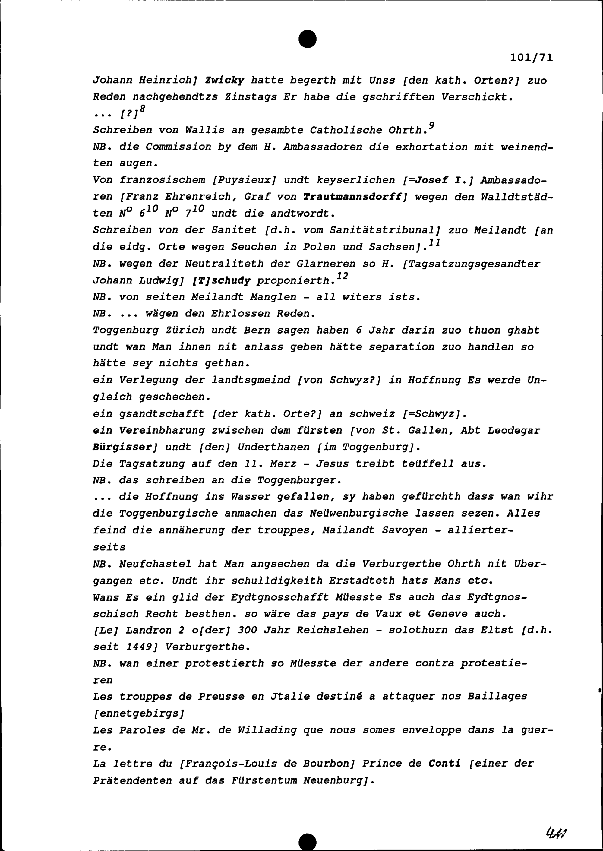Bericht von Beat Jakob II. Zurlauben, Tagsatzungsgesandter von Stadt und Amt Zug, über die am 15. Januar 1708 in Baden begonnene Tagsatzung