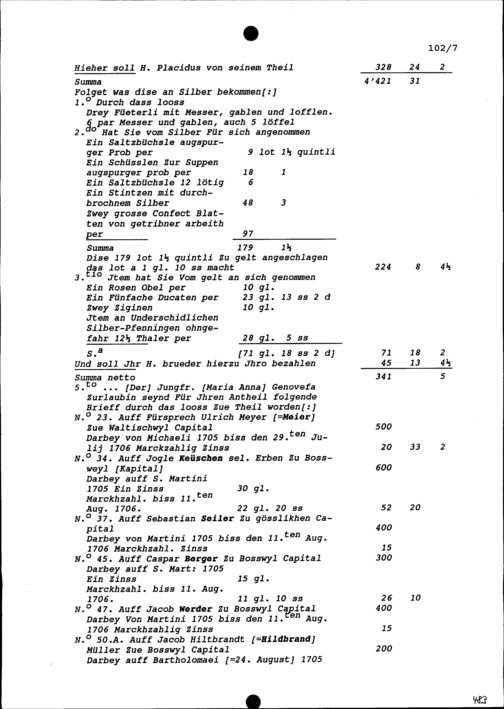 Inventar der Hinterlassenschaft von Beat Kaspar Zurlauben