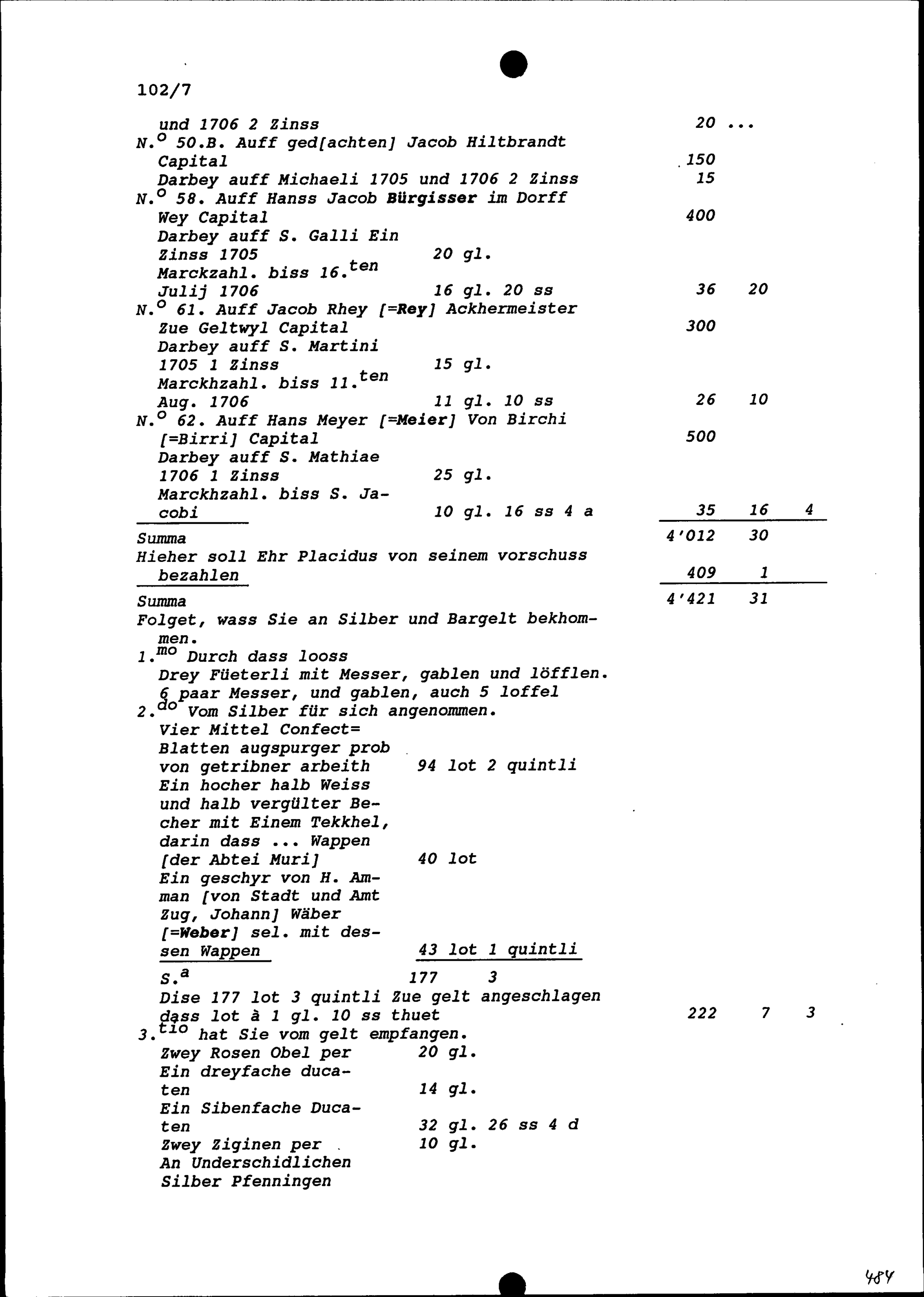 Inventar der Hinterlassenschaft von Beat Kaspar Zurlauben