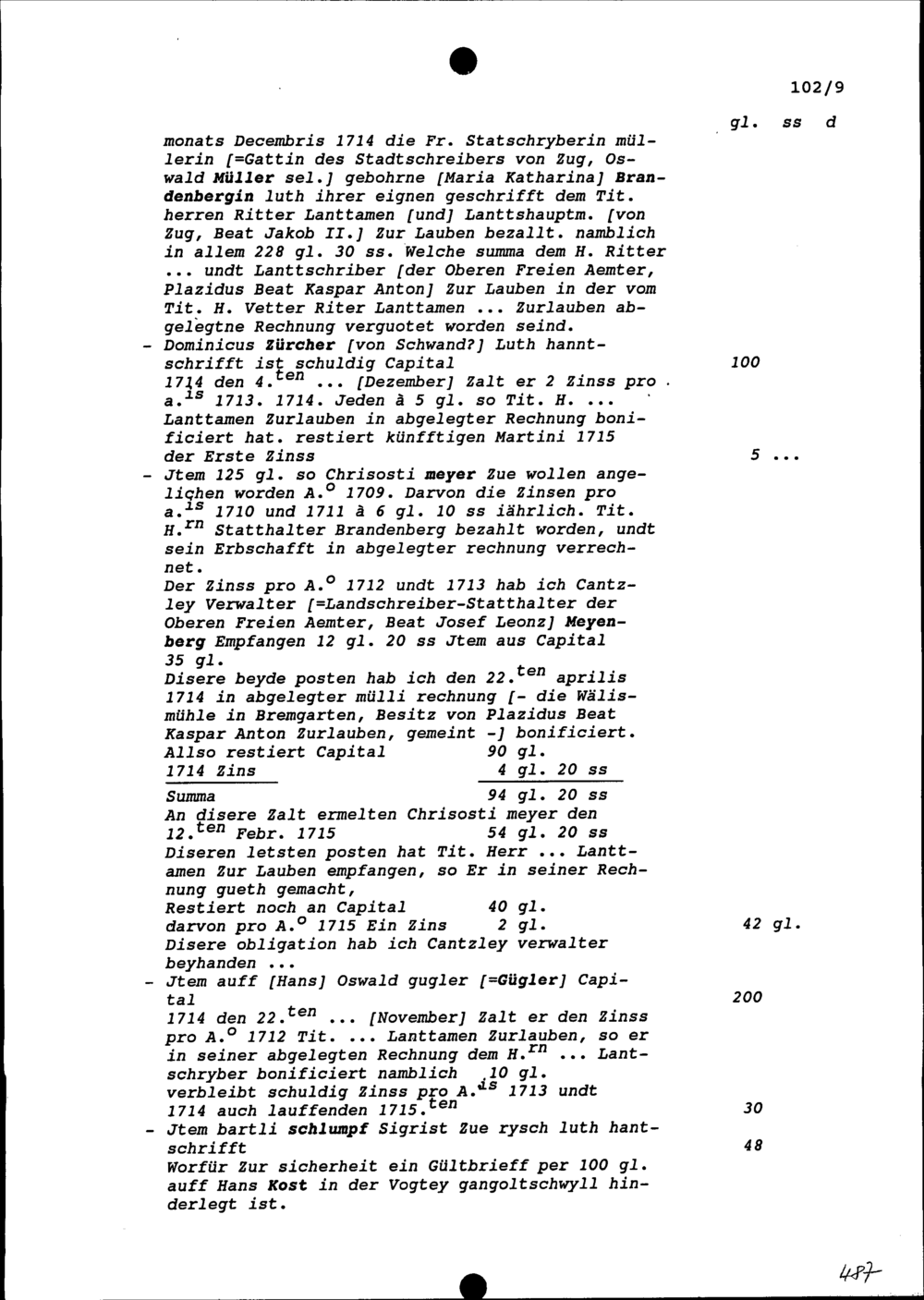 Abrechnung von Beat Jakob II. Zurlauben, Vormund von Plazidus Beat Kaspar Anton Zurlauben, sein Neffe