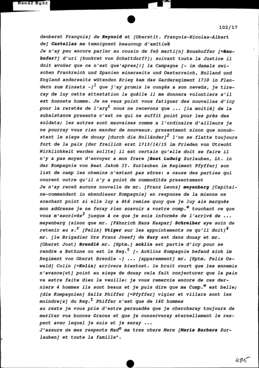 Schreiben von Beat Franz Plazidus Zurlauben, Gardehauptmann, an Beat Jakob II. Zurlauben,...