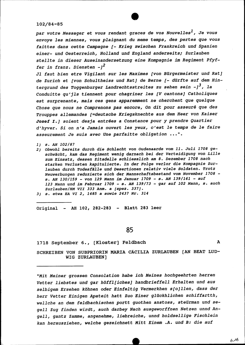 Schreiben von Maria Cäcilia Zurlauben, Subpriorin, an Beat Ludwig Zurlauben