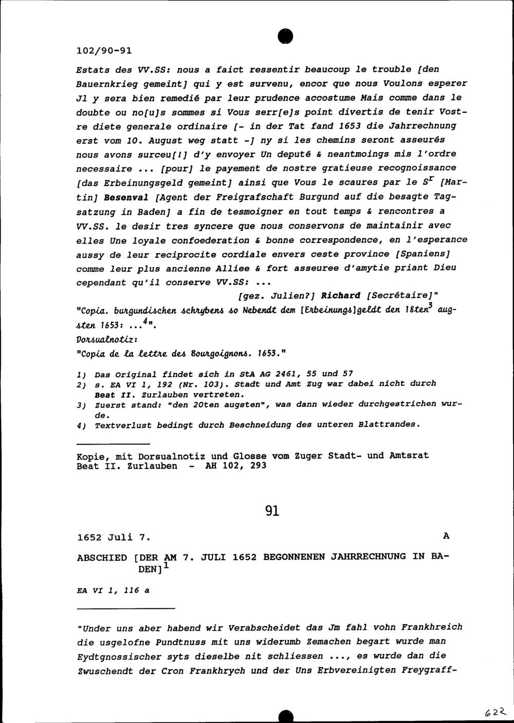 Abschied der am 7. Juli 1652 begonnenen Jahrrechnung in Baden