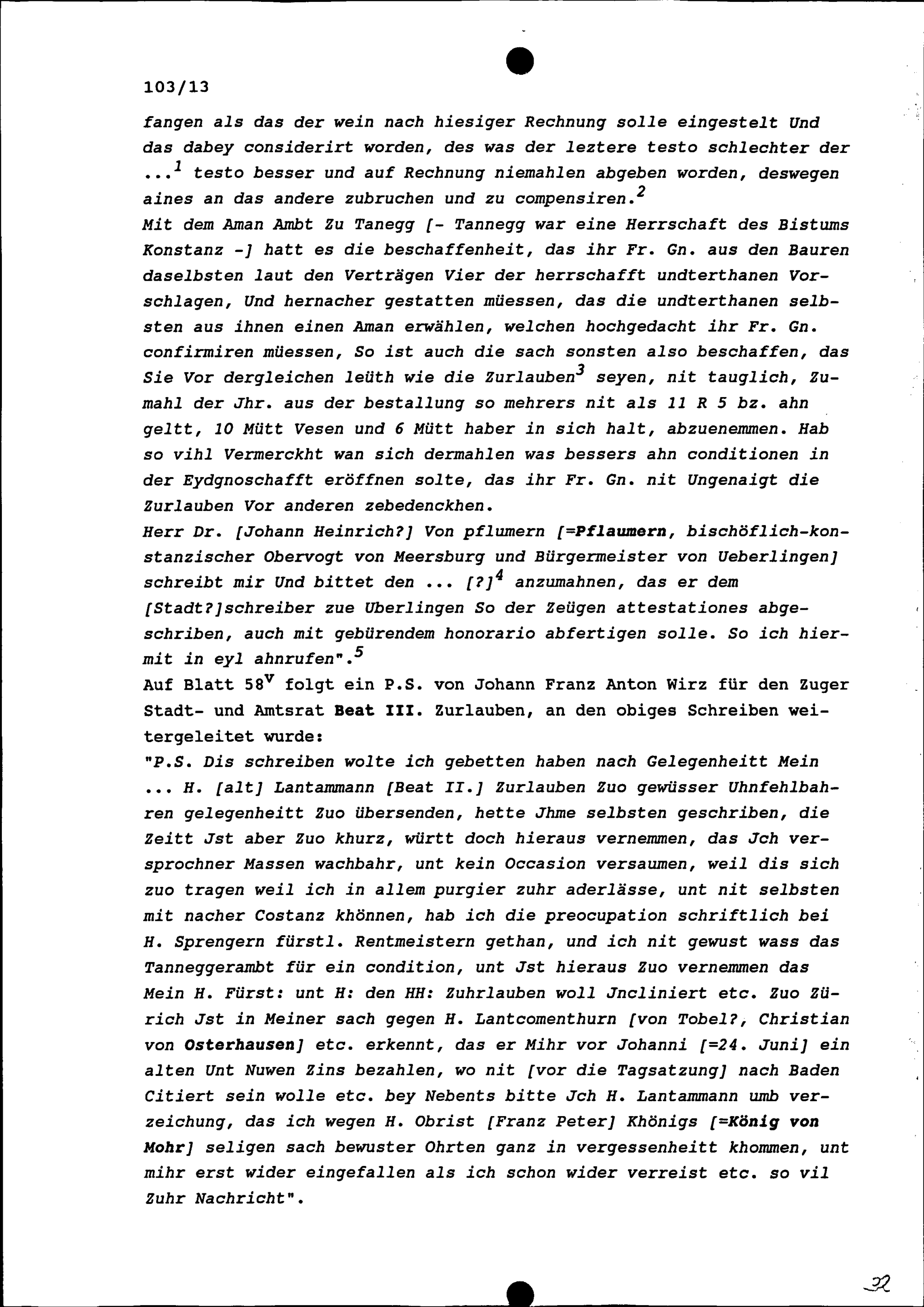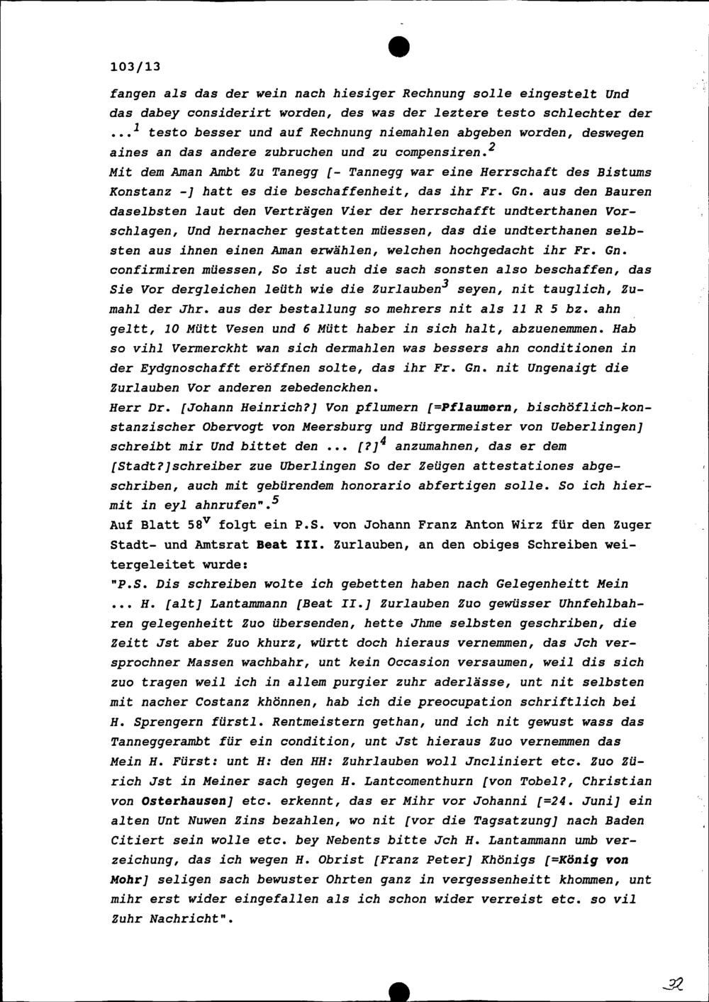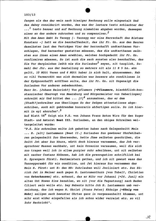 Schreiben von G. Sprenger, bischöflich-konstanzischer Rentmeister, an Johann Franz...