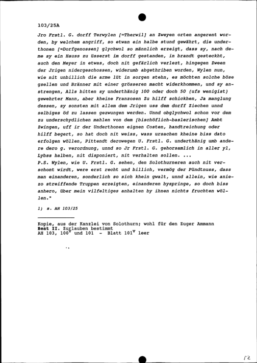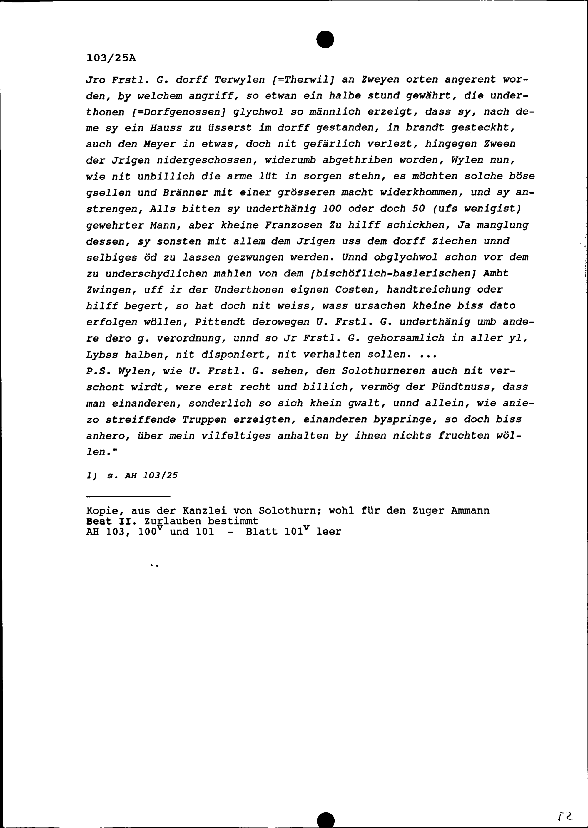 Schreiben des bischöflich-baslerischen Vogts von Birseck an Johann Heinrich von Ostein, Bischof von Basel