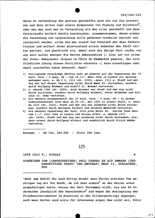 Schreiben von Paul Ceberg, Landschreiber, an Beat II. Zurlauben, Altammann und Stadt- und Amtrat, Zug