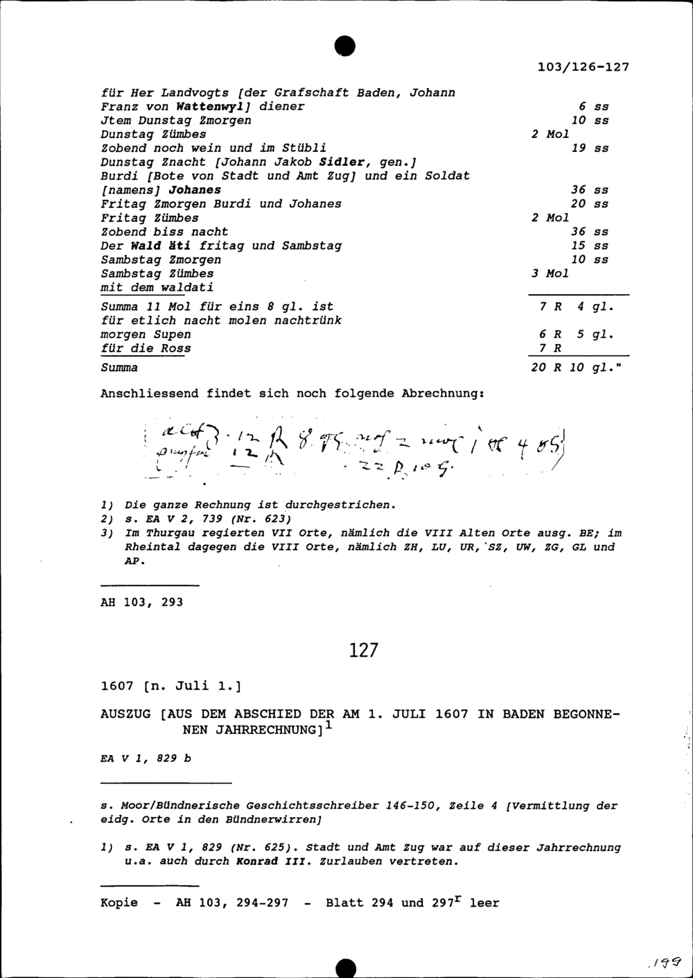 Abschied der am 1. Juli 1607 in Baden begonnenen Jahrrechnung (Auszug)