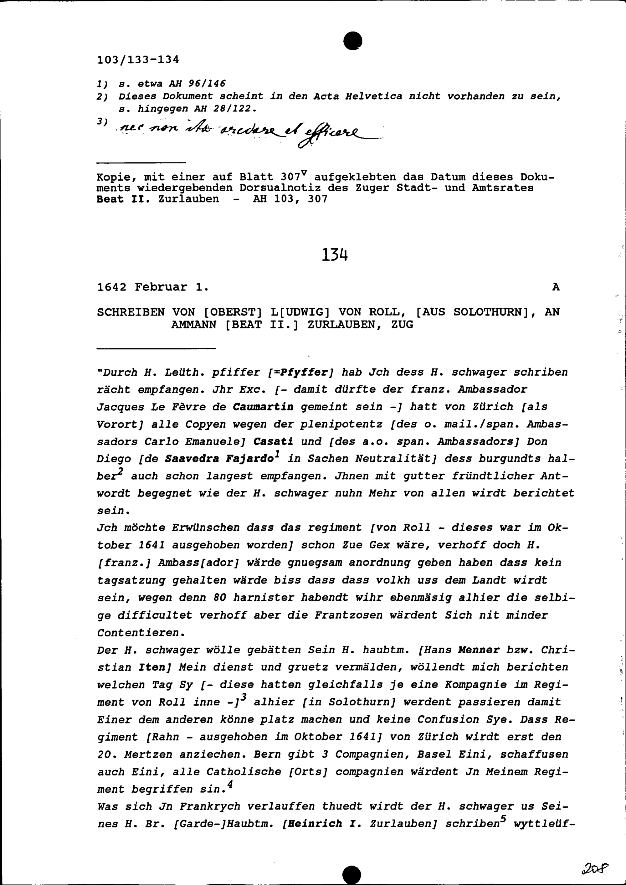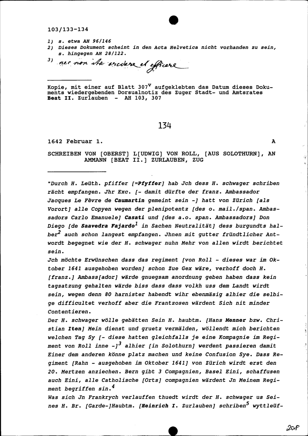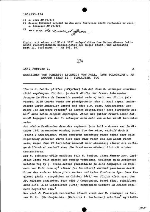 Schreiben von Ludwig von Roll, Oberst, aus Solothurn, an Beat II. Zurlauben, Ammann,...