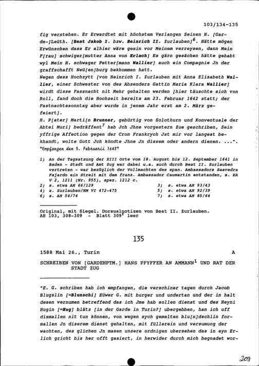 Schreiben von Hans Pfyffer, Gardehauptmann, an Ammann und Rat der Stadt Zug