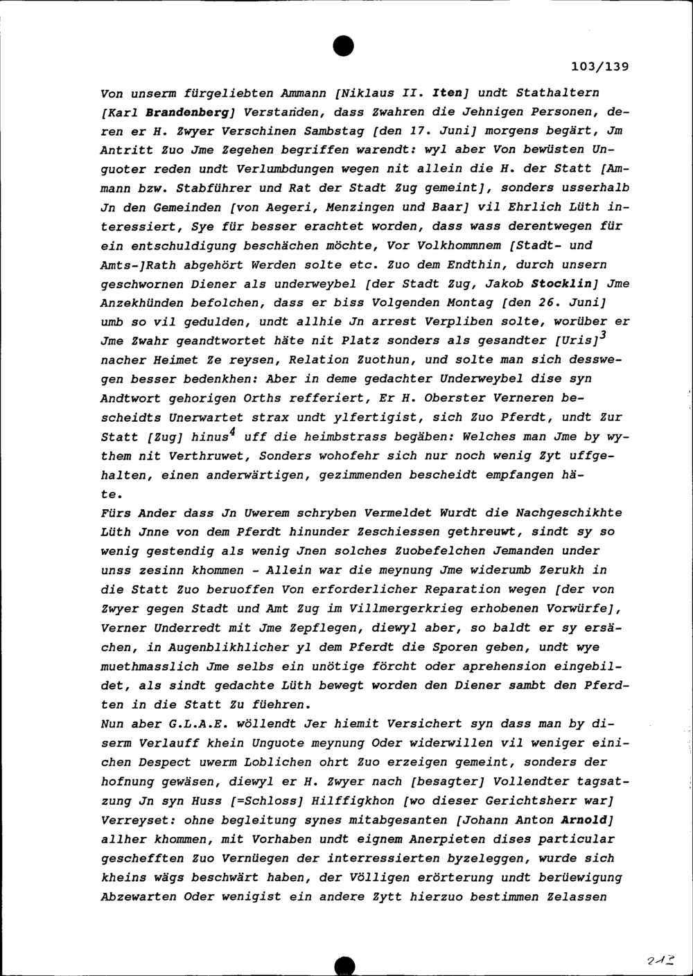 Schreiben des Ammanns und Rats von Stadt und Amt Zug an Landammann und Landrat Uri