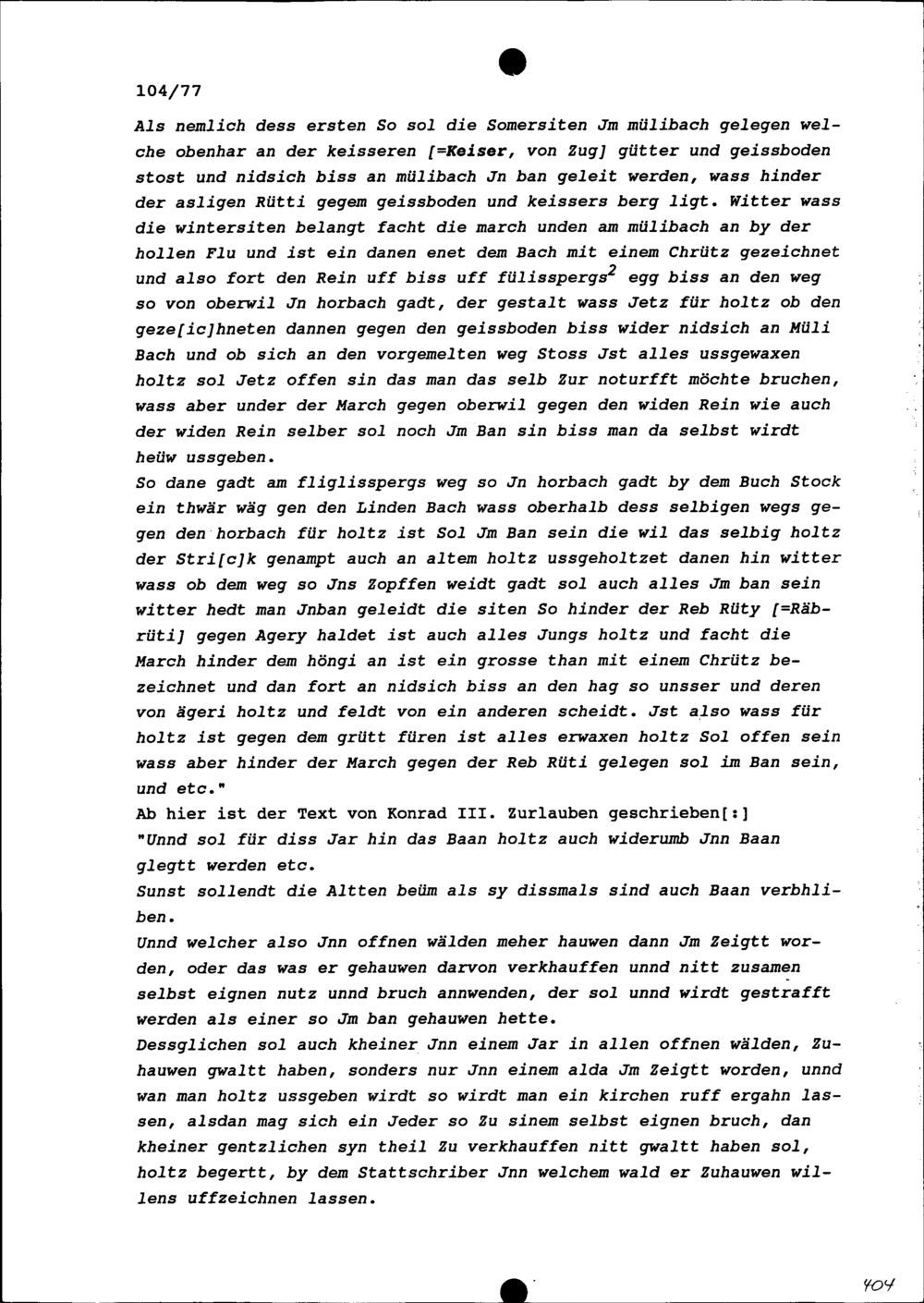 Erlass des Ammanns (Stabführers), Rats und der Bürger der Stadt Zug bezüglich der Waldstücke, die zum Holzen freigegeben beziehungsweise mit dem Bann belegt werden sollen