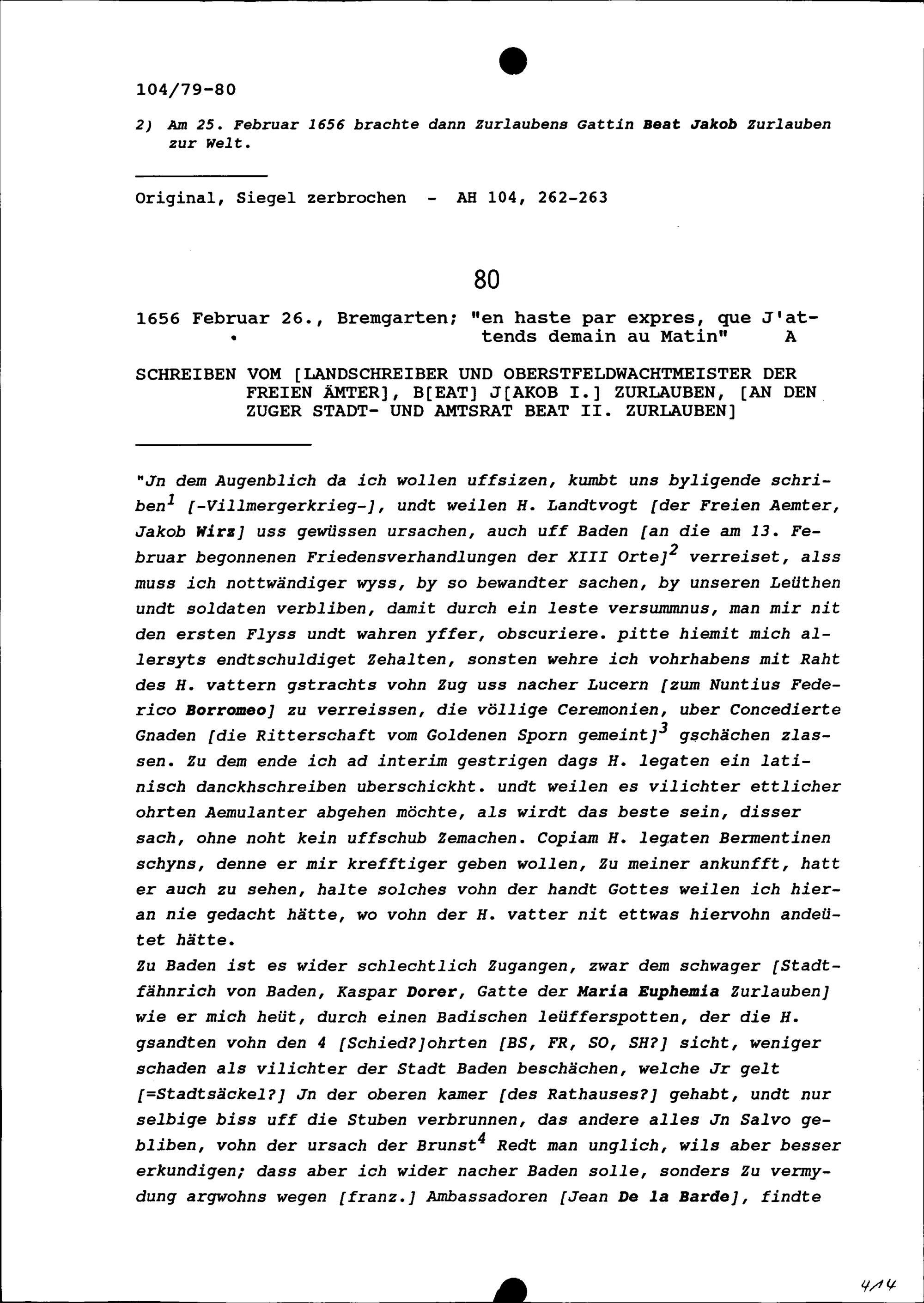 Schreiben von Beat Jakob I. Zurlauben, Landschreiber und Oberstfeldwachtmeister der...