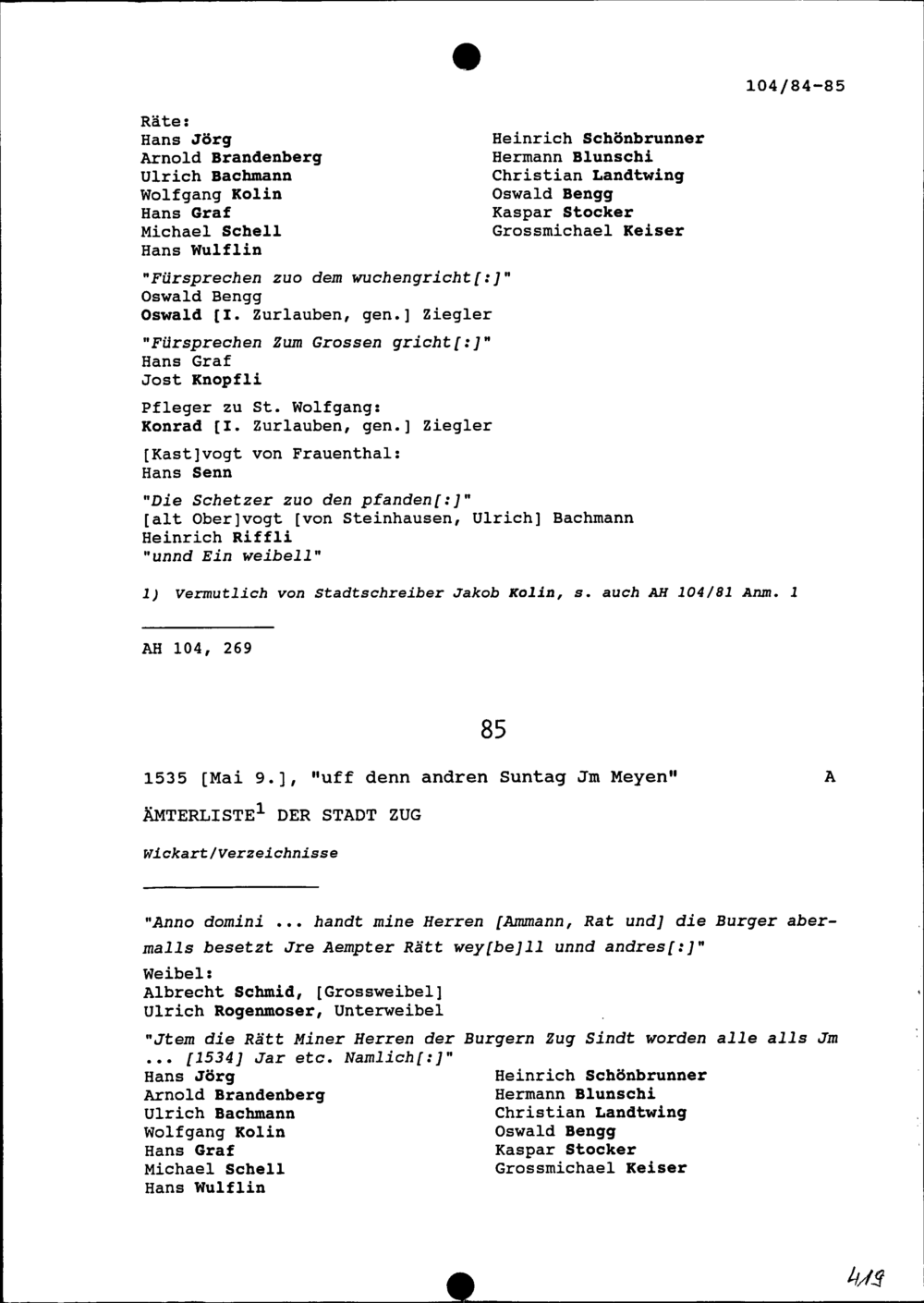 Ämterliste der Stadt Zug