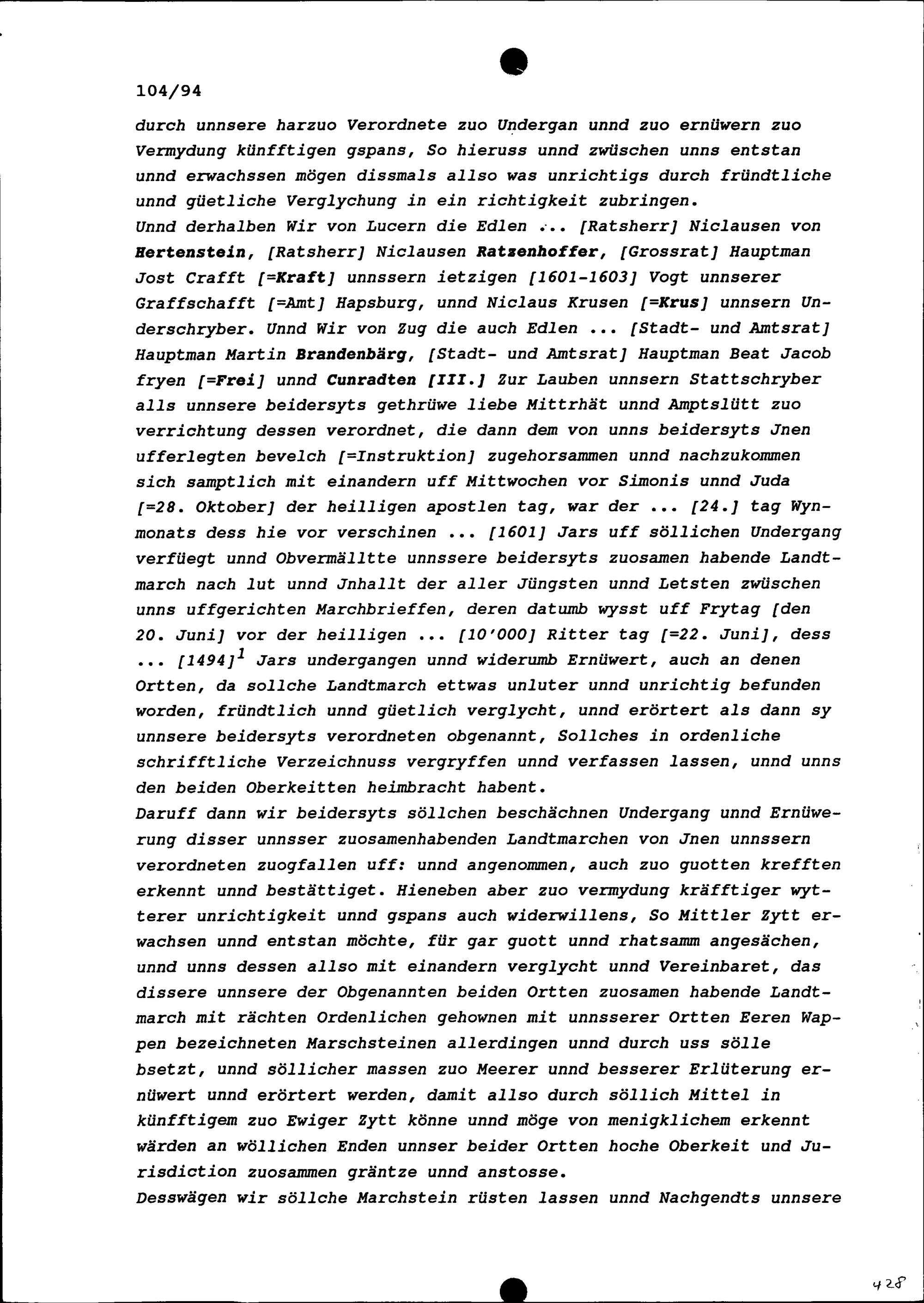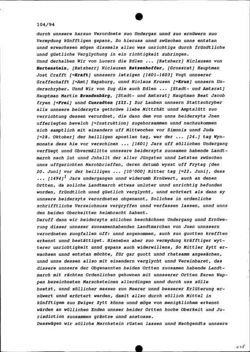 Festsetzung der Landmarchen zwischen Luzern und der Stadt Zug