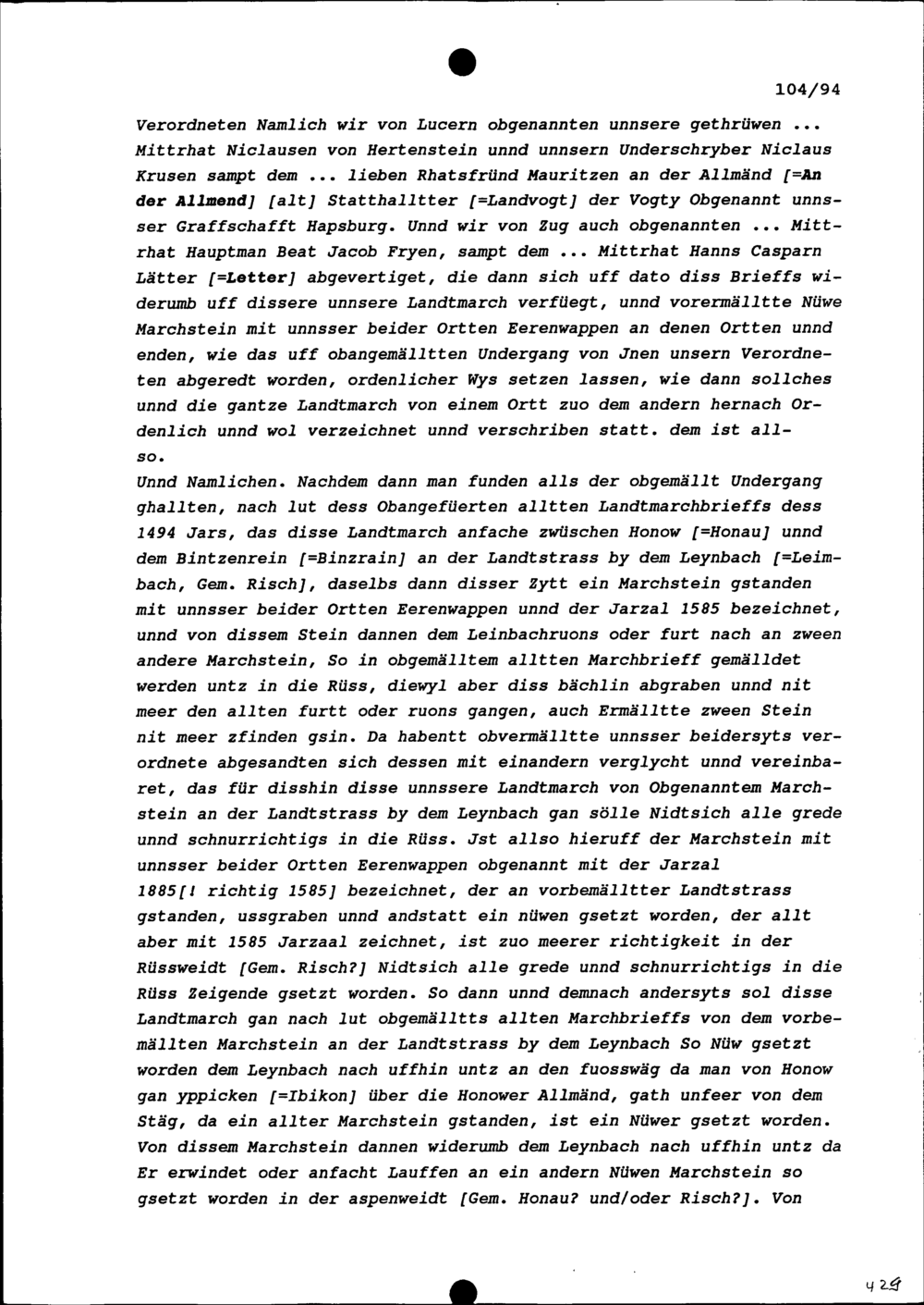 Festsetzung der Landmarchen zwischen Luzern und der Stadt Zug