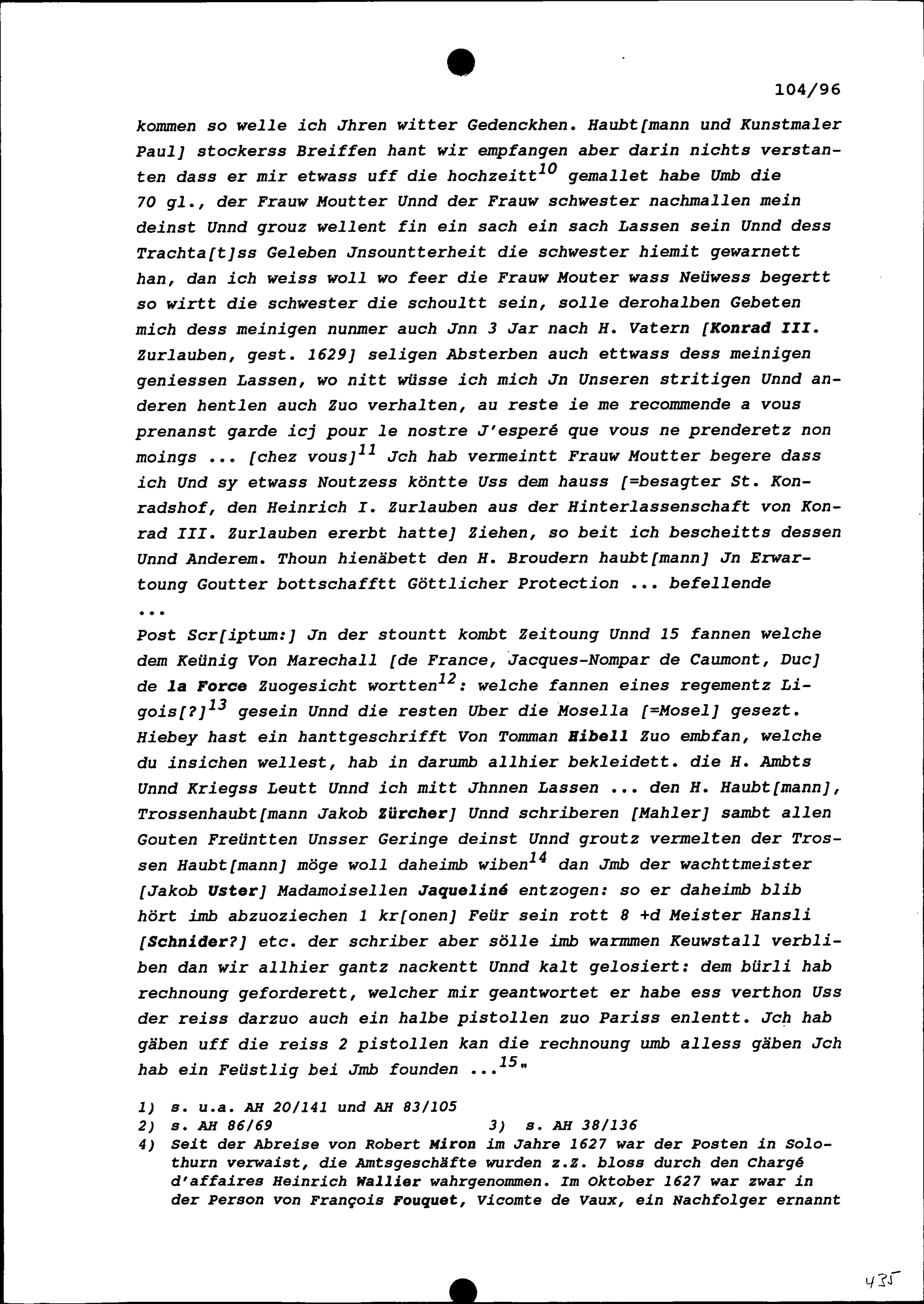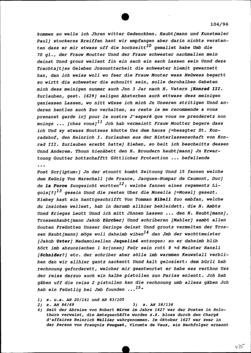 Schreiben von Heinrich I. Zurlauben, Gardeleutnant, an Beat II. Zurlauben, Stadt- und Amtrat Zug und Gardehauptmann