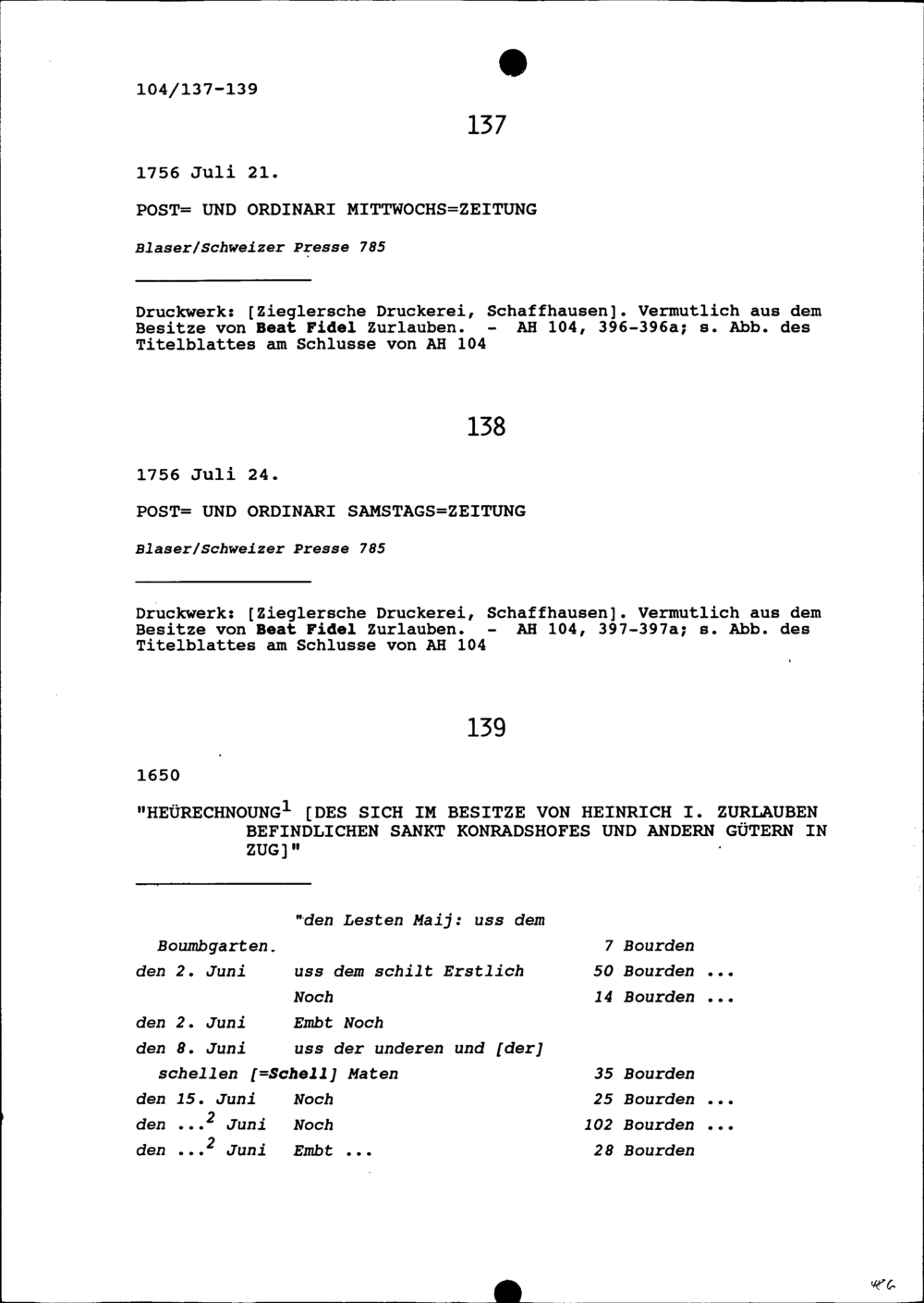 Druck: Post- und Ordinari Samstagszeitung, Nr. 58
