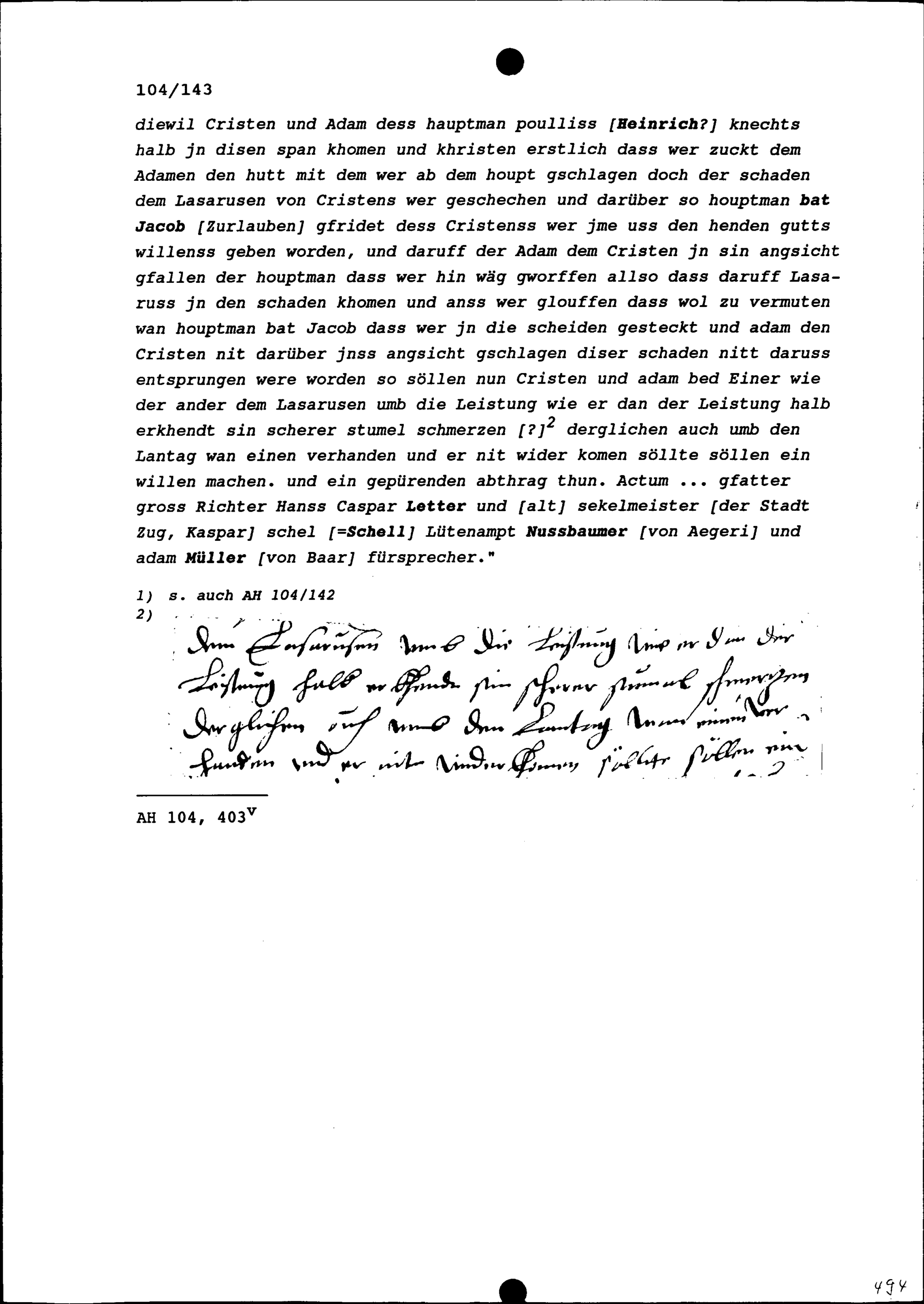 Urteil im Streit zwischen Christian Landtwing und Adam Bachmann, beide von Zug, aufgezeichnet von Hans Kolin, Zuger Landschreiber