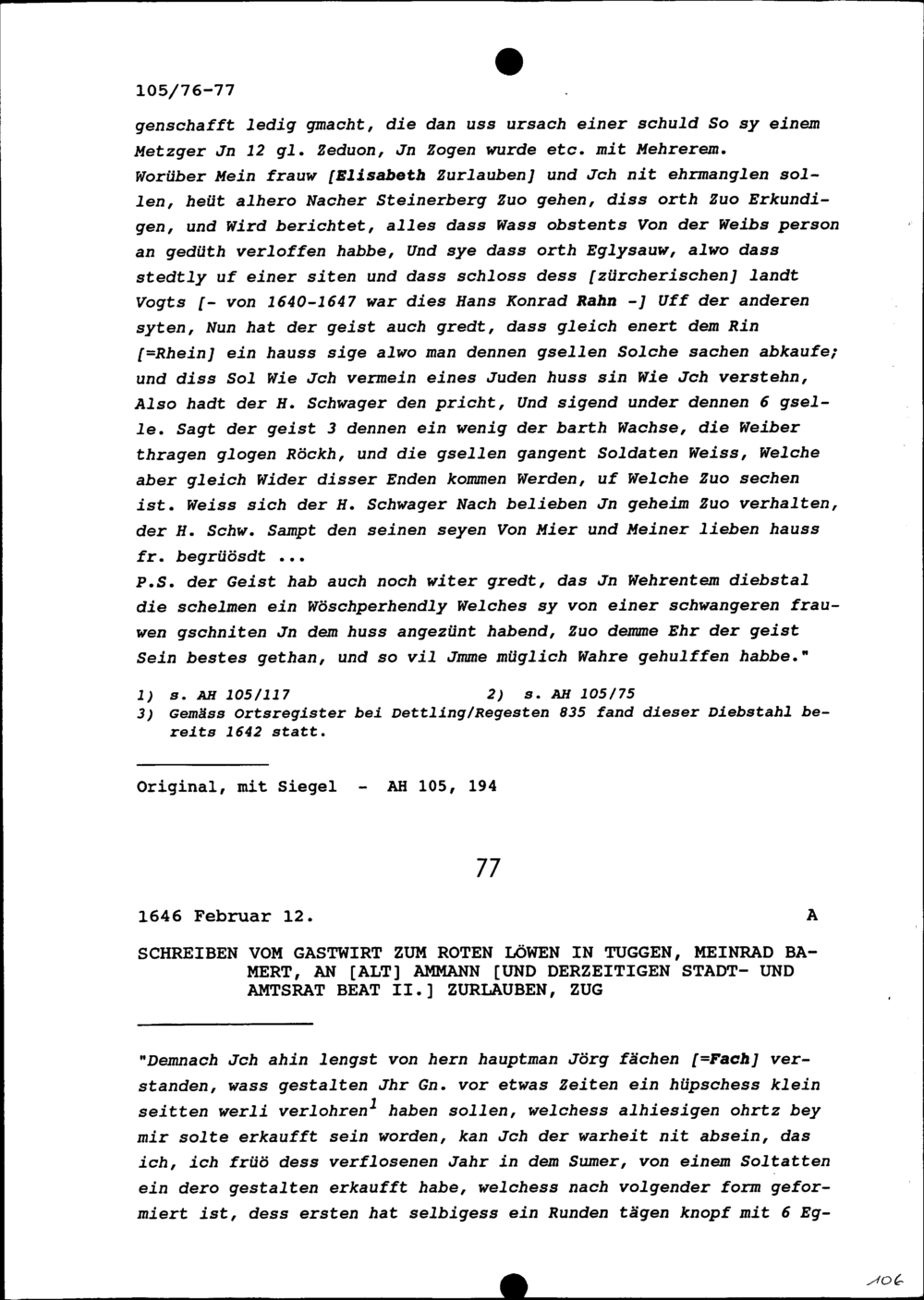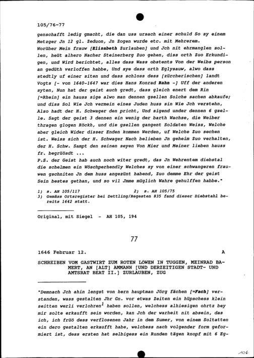 Schreiben von Meinrad Bamert, Gastwirt zum Roten Löwen in Tuggen, an Beat II. Zurlauben,...