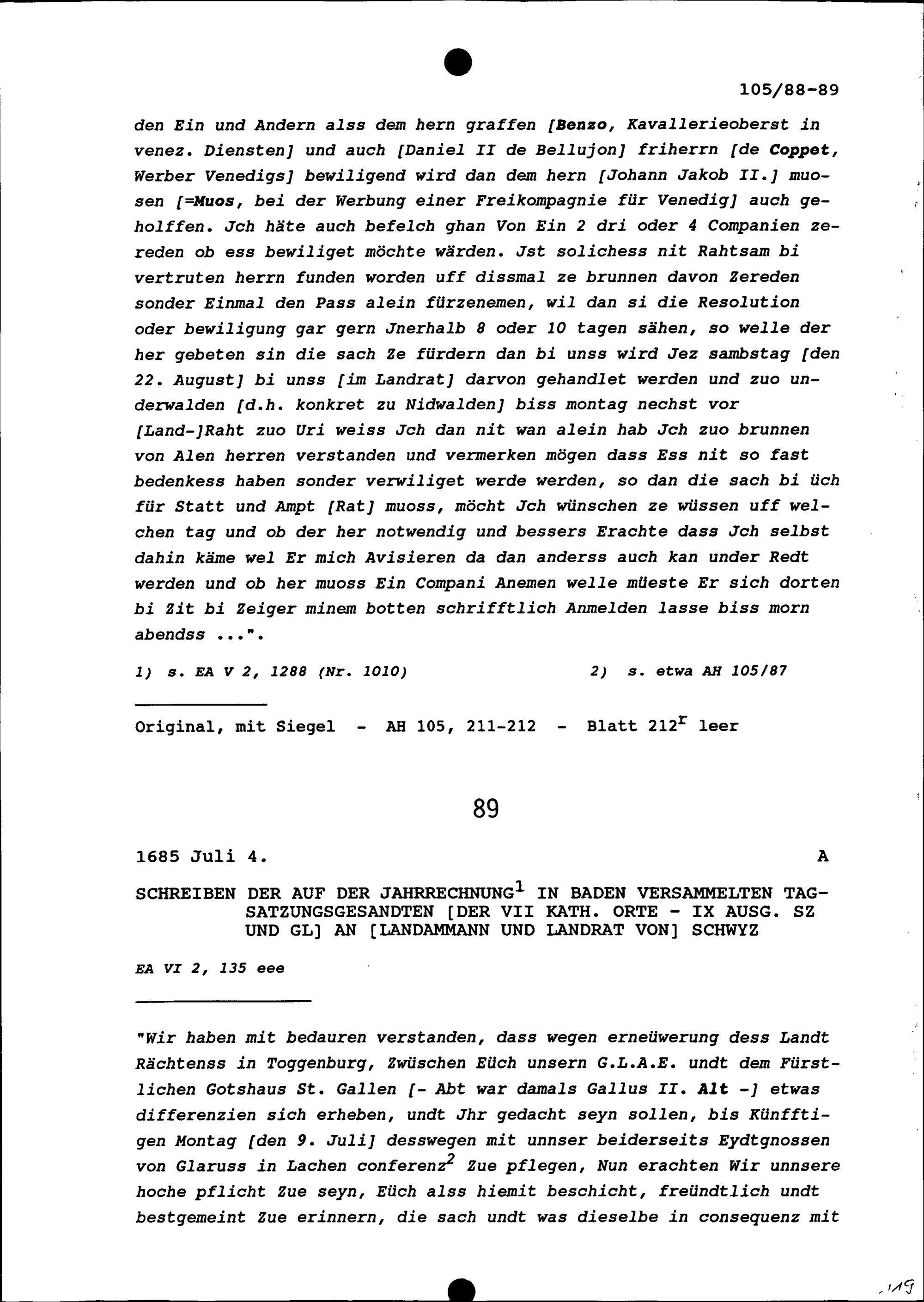 Schreiben der Tagsatzungsgesandten der Sieben Katholischen Orte auf der Jahrrechnung in Baden an Landammann und Landrat Schwyz