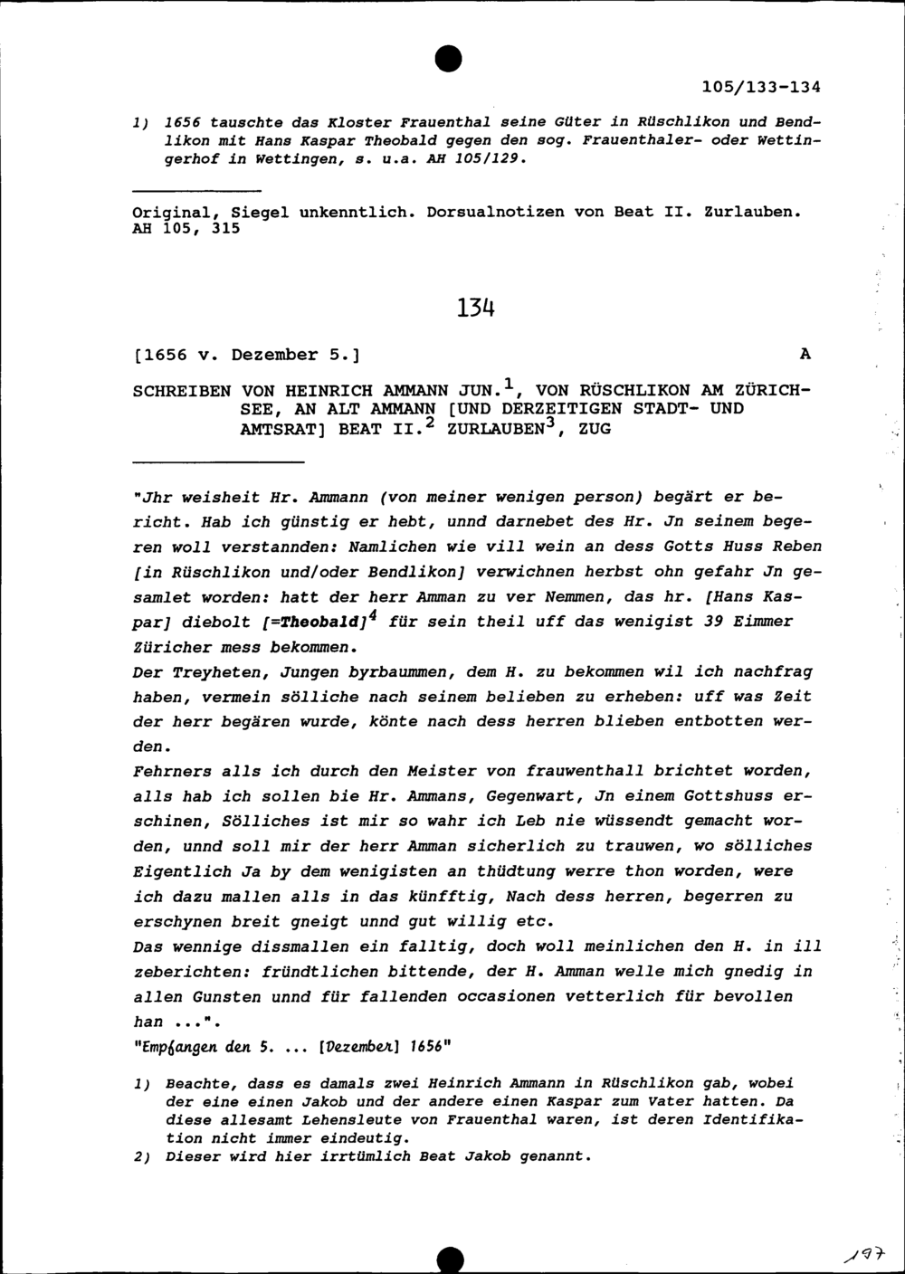Schreiben von Heinrich Ammann, Junior, von Rüschlikon, an Beat II. Zurlauben, Altammann...