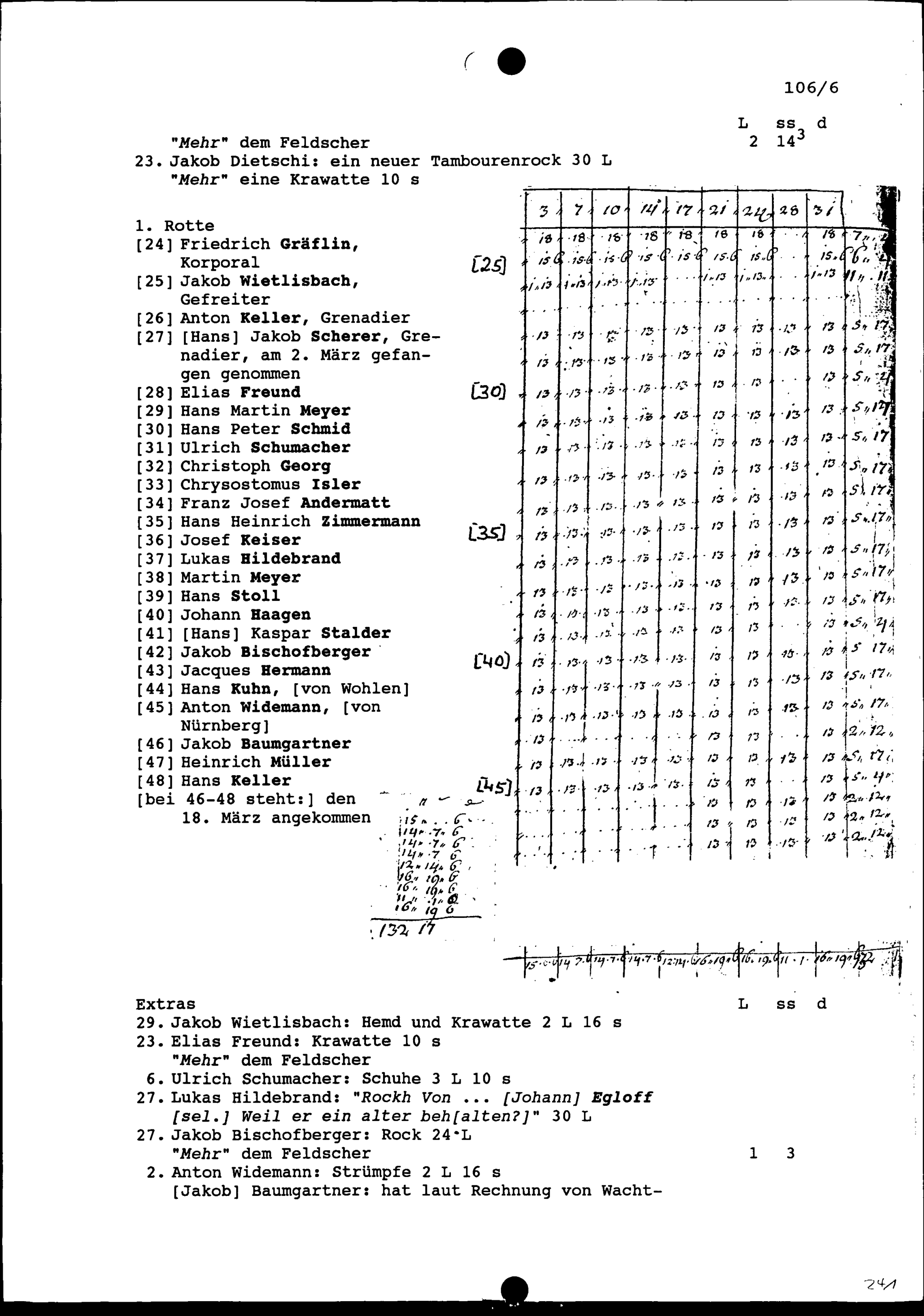 Mannschaftsrodel der Kompanie von Beat Jakob II. Zurlauben im Regiment Pfyffer, verwaltet von Hans Kaspar Schreiber, Fähnrich