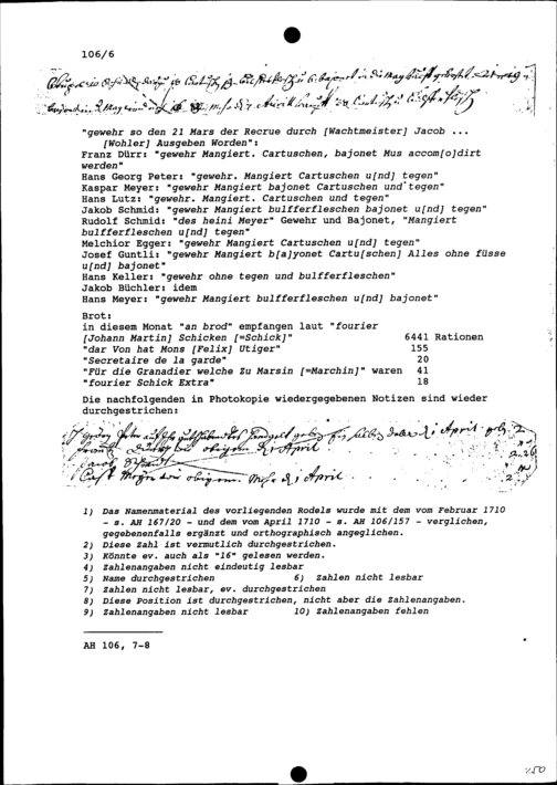 Mannschaftsrodel der Kompanie von Beat Jakob II. Zurlauben im Regiment Pfyffer, verwaltet von Hans Kaspar Schreiber, Fähnrich