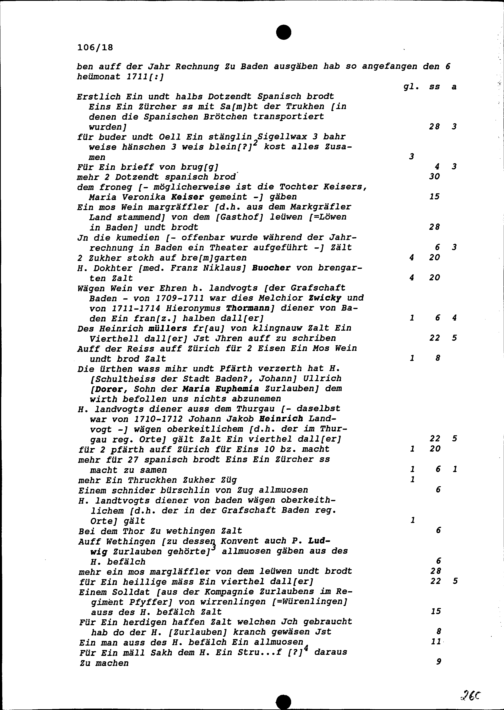 Abrechnung zwischen Franz Remigius Keiser, Stadttrompeter und Werber, von Zug, und Beat Jakob II. Zurlauben, Altammann und Tagsatzungsgesandter von Stadt und Amt Zug auf der am 5. Juli 1711 in Baden begonnenen Jahrrechnung
