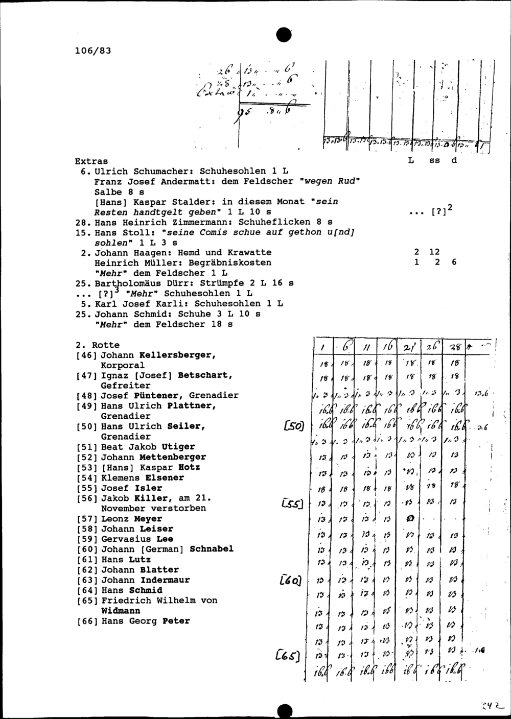 Mannschaftsrodel der Kompanie von Beat Jakob II. Zurlauben im Regiment Pfyffer, verwaltet von Hans Kaspar Schreiber, Fähnrich