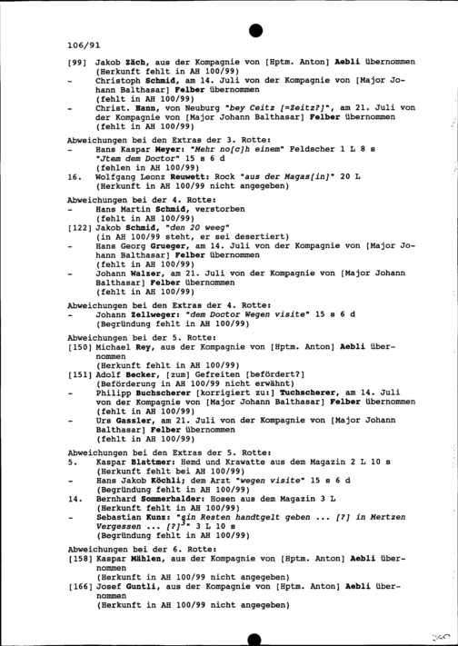Mannschaftsrodel der Kompanie von Beat Jakob II. Zurlauben im Regiment Pfyffer, verwaltet von Hans Kaspar Schreiber, Fähnrich
